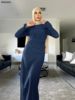 Siskakia Ramadan Dubai Elegant Arab Tunics Maxi Dress Muslim O-Neck Abaya Solid Belted Kaftan Elegant Casual Clothing