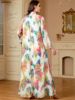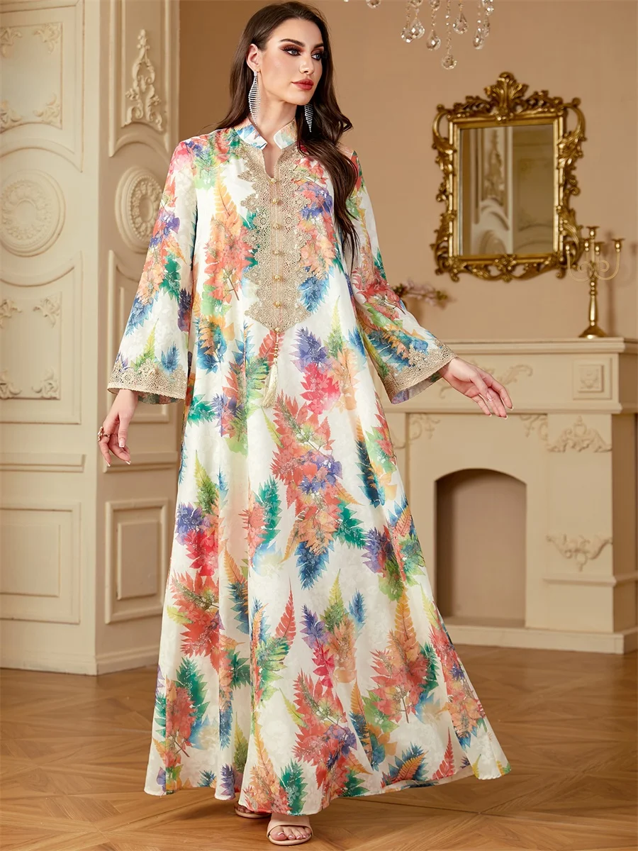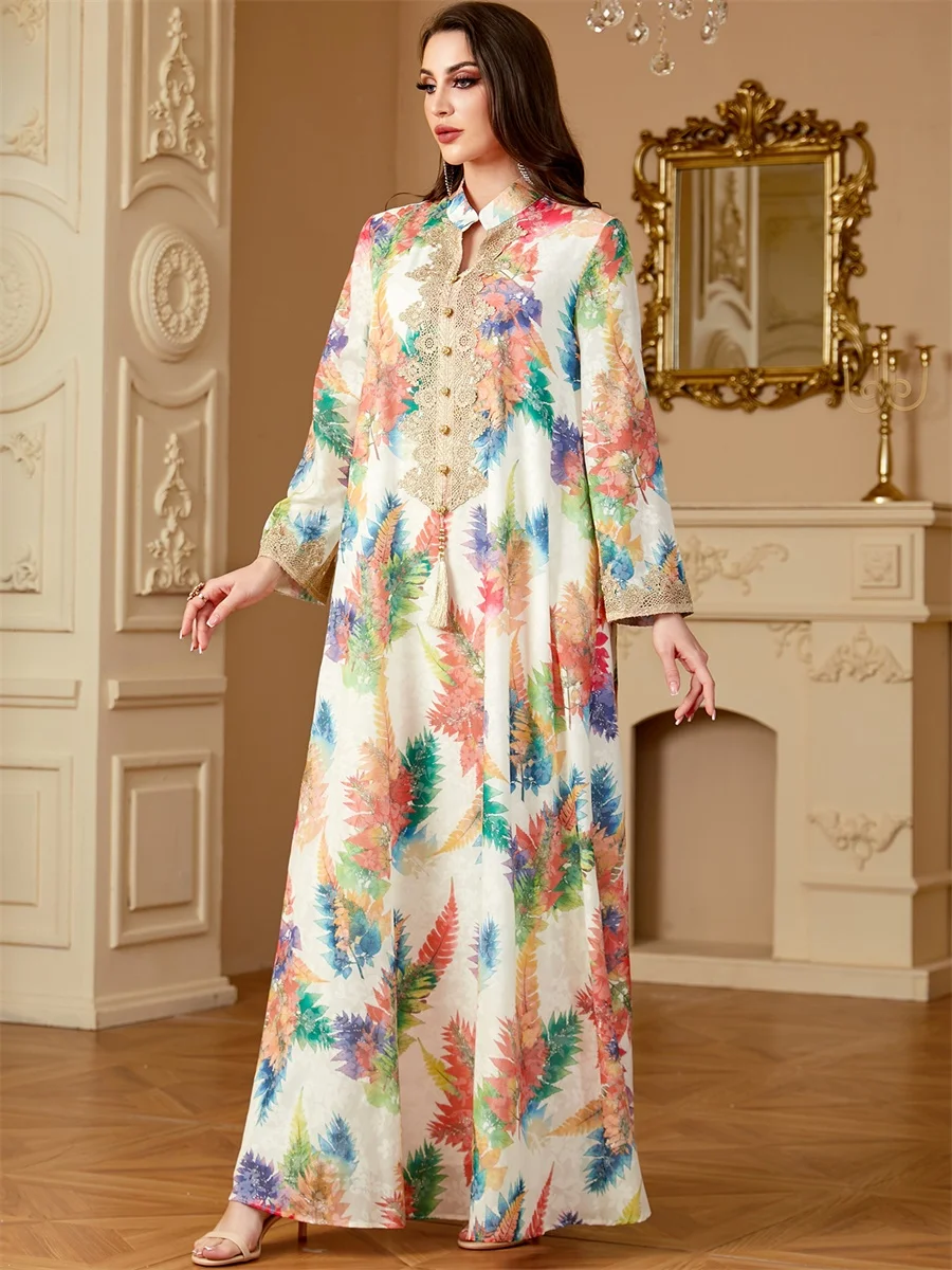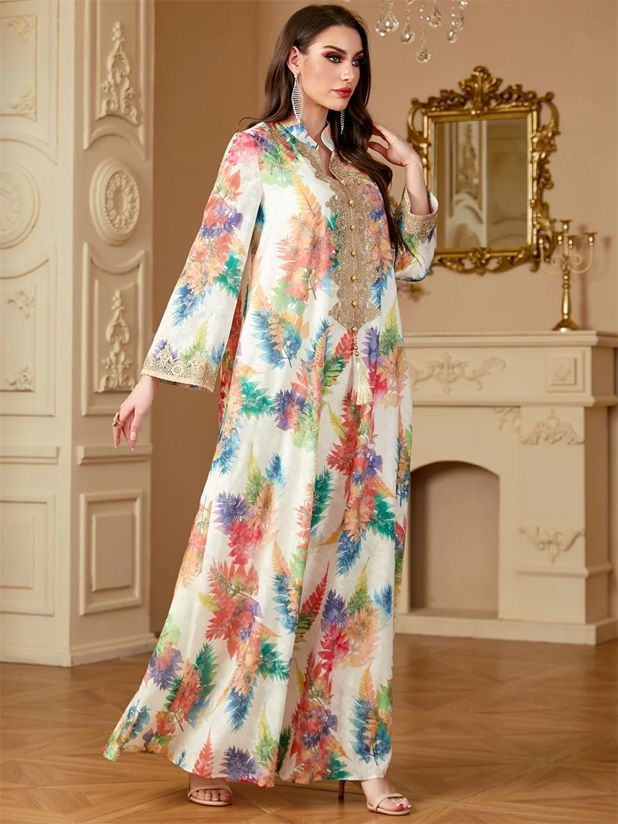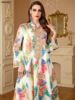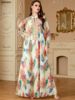Siskakia Ramadan Dubai Embroidery Floral Print Abaya Muslim Elegant Women Evening Dress Moroccan Polyester Loose Kaftan