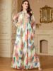 Siskakia Ramadan Dubai Embroidery Floral Print Abaya Muslim Elegant Women Evening Dress Moroccan Polyester Loose Kaftan