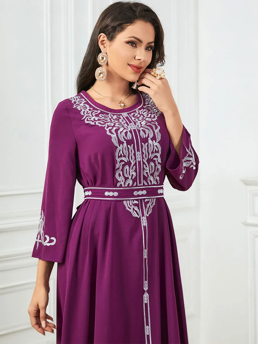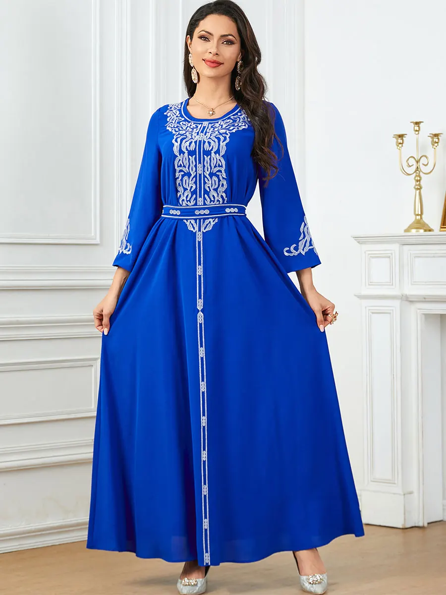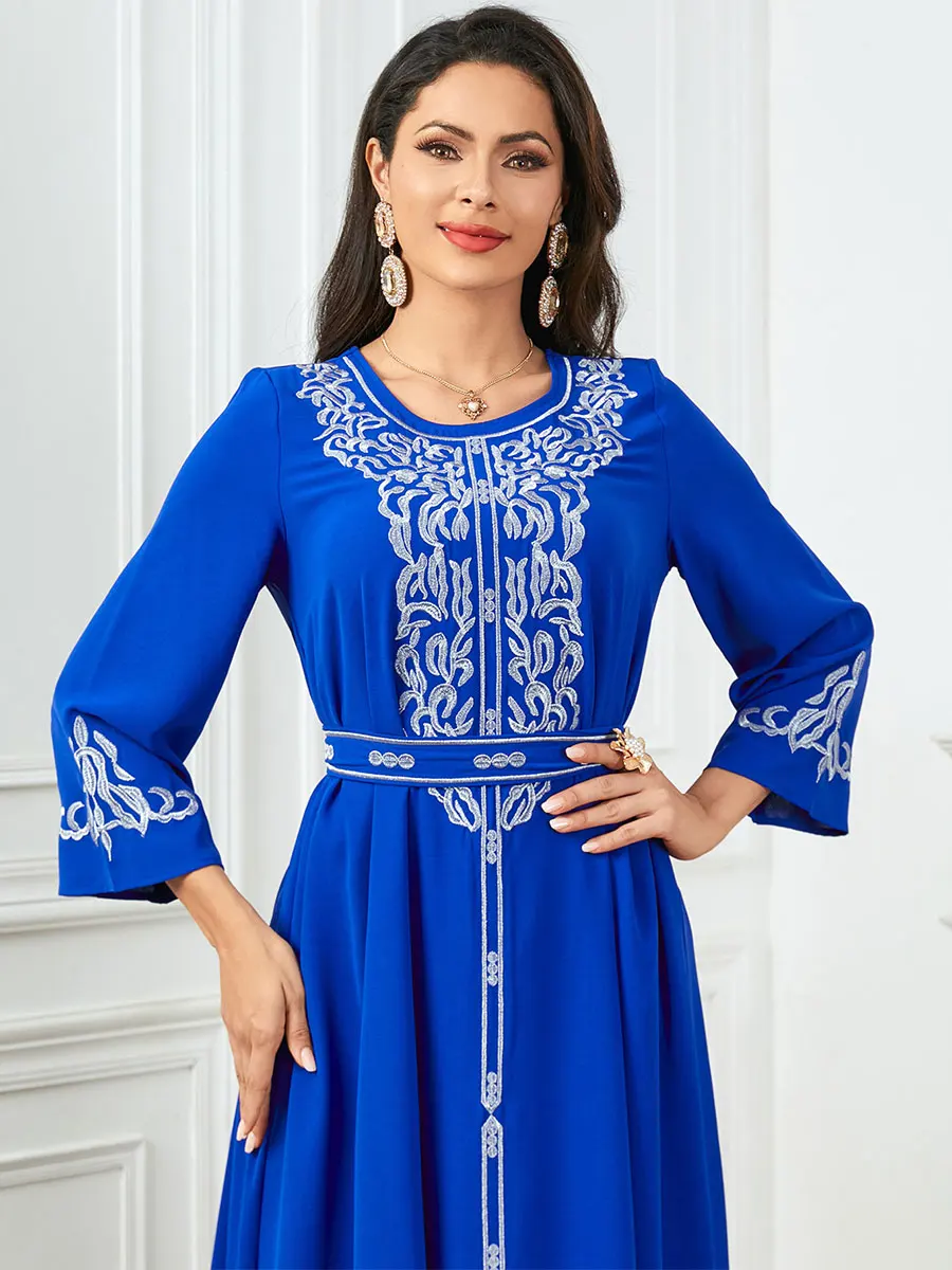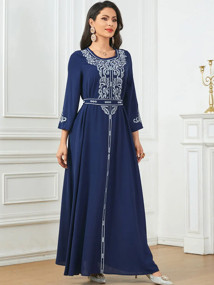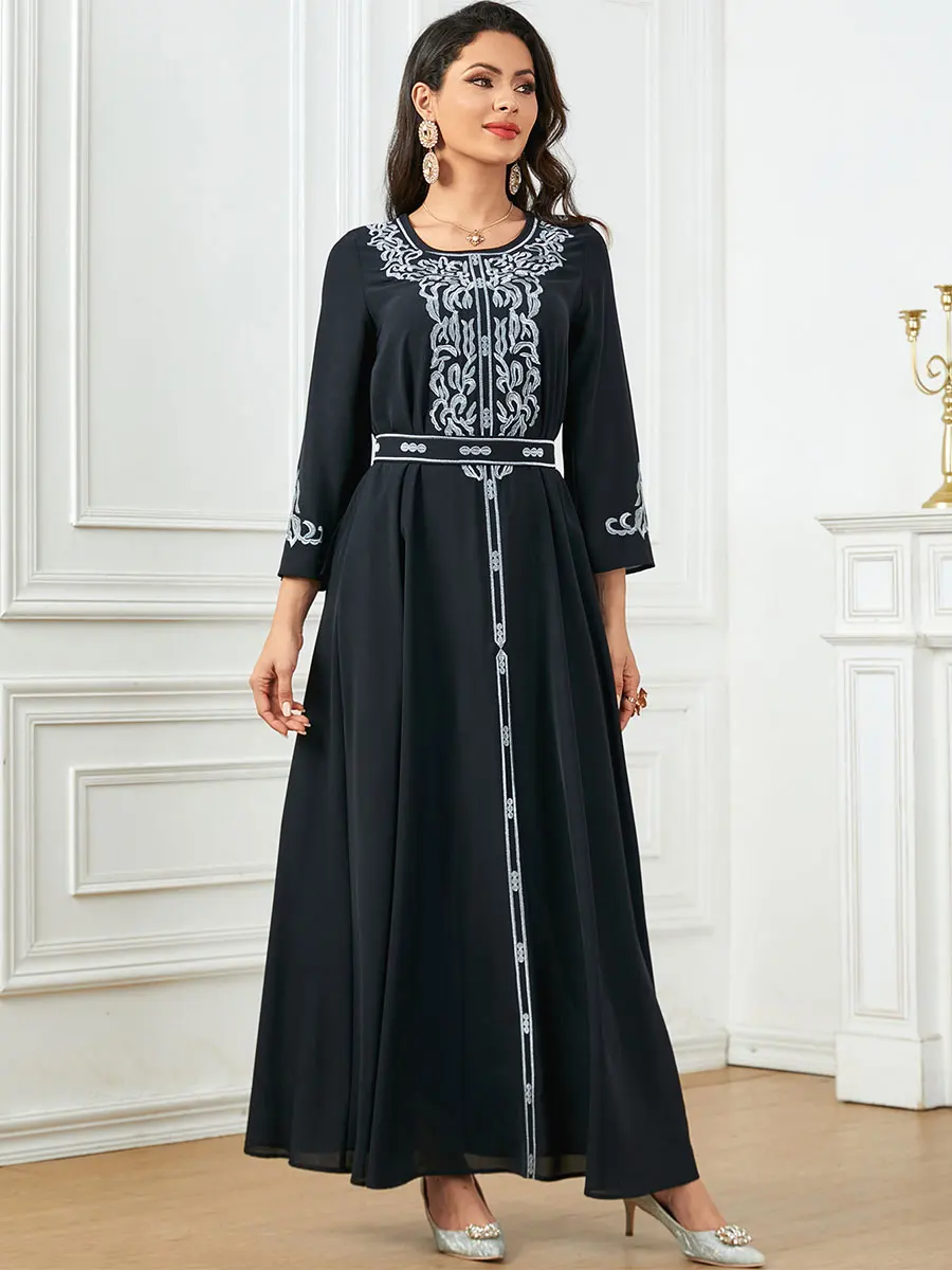 Siskakia Ramadan Dubai Embroidery O-Neck Long Dresses With Sashes For Muslim Kebaya Women’s Elegant Fashion Abayas