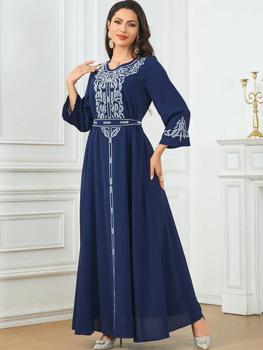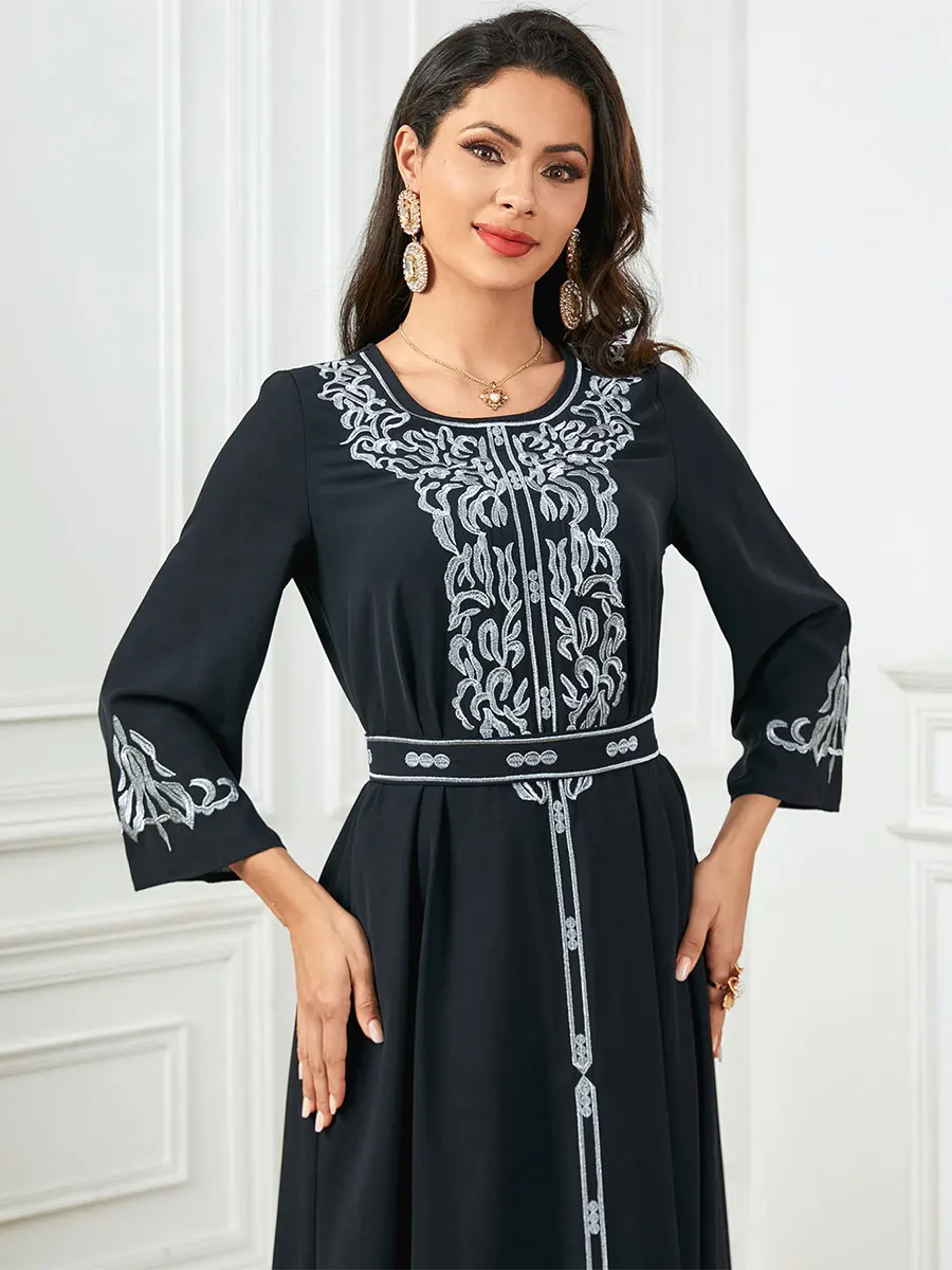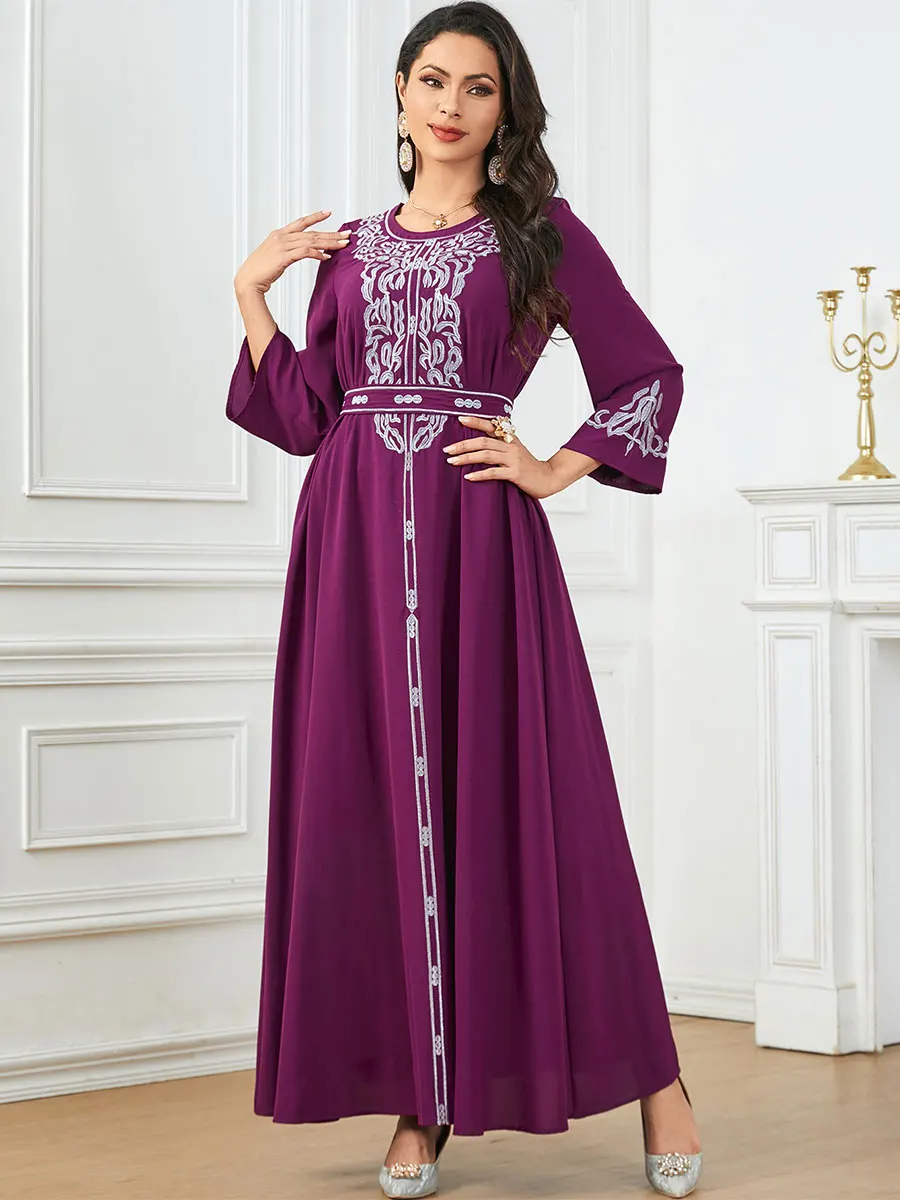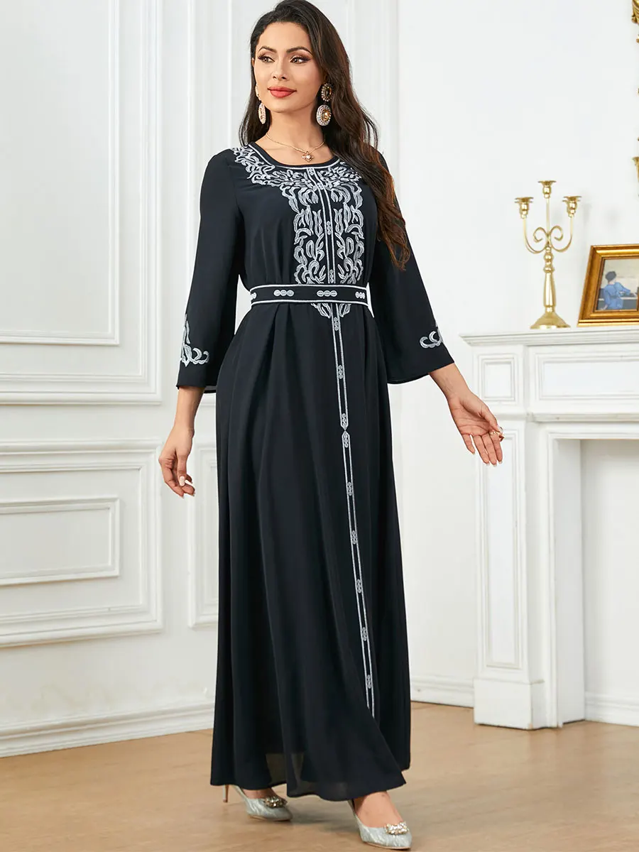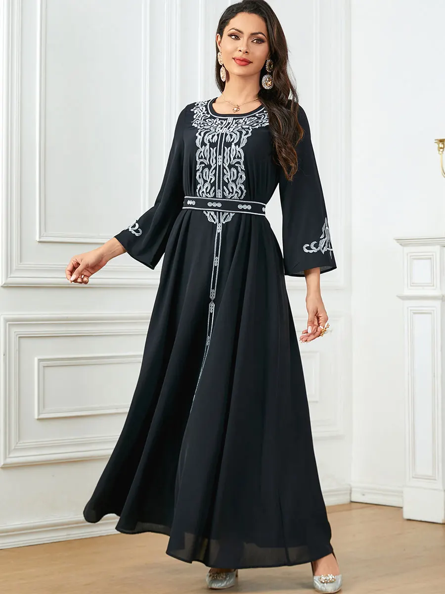 Siskakia Ramadan Dubai Embroidery O-Neck Long Dresses With Sashes For Muslim Kebaya Women’s Elegant Fashion Abayas