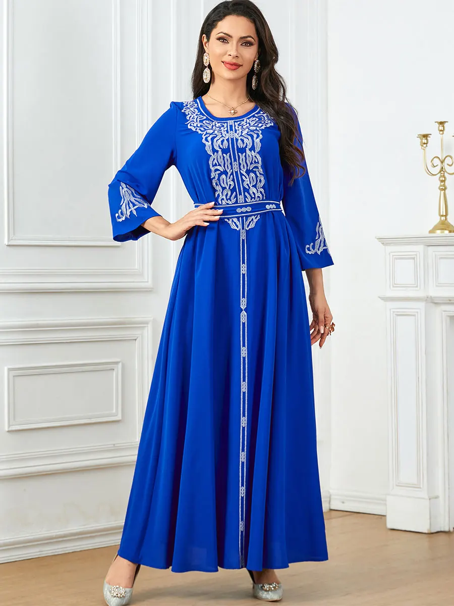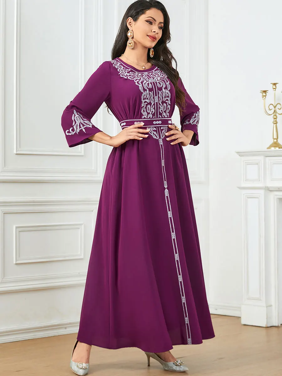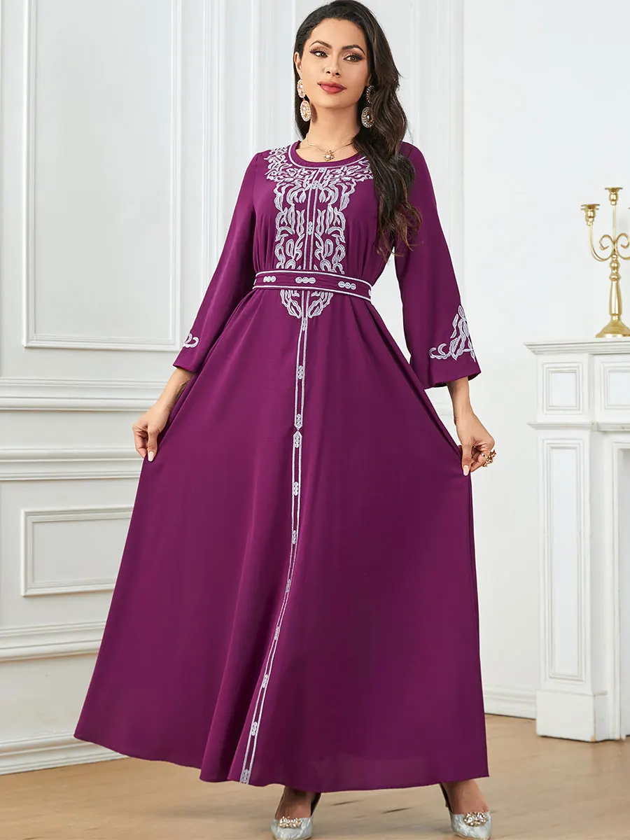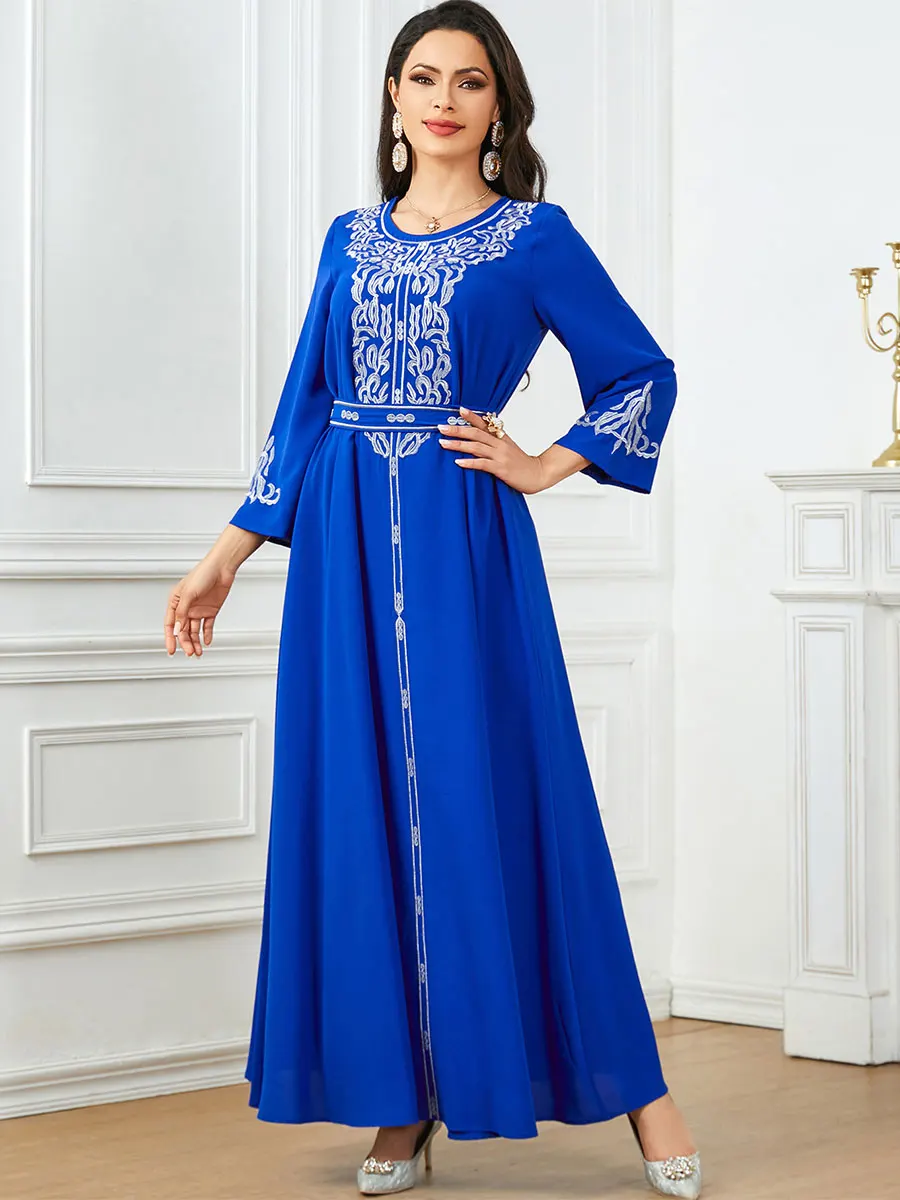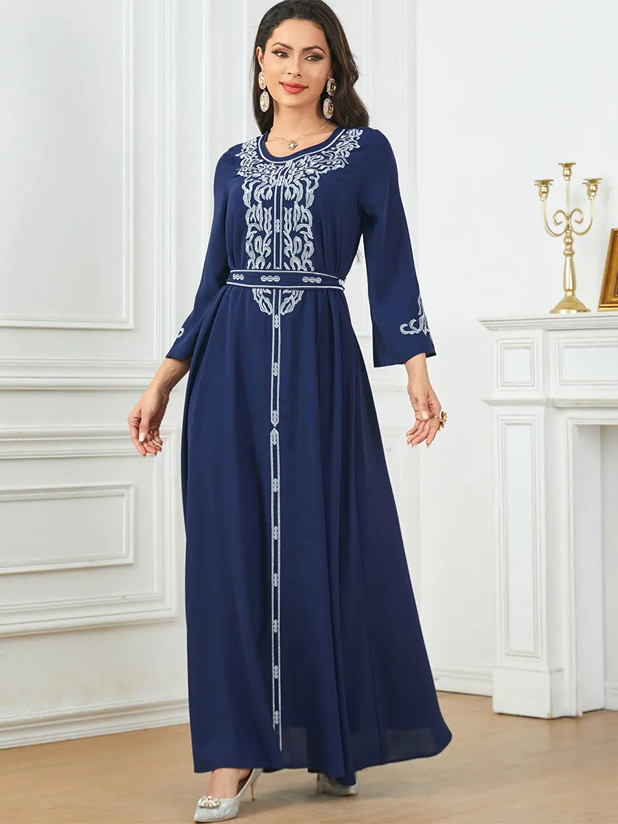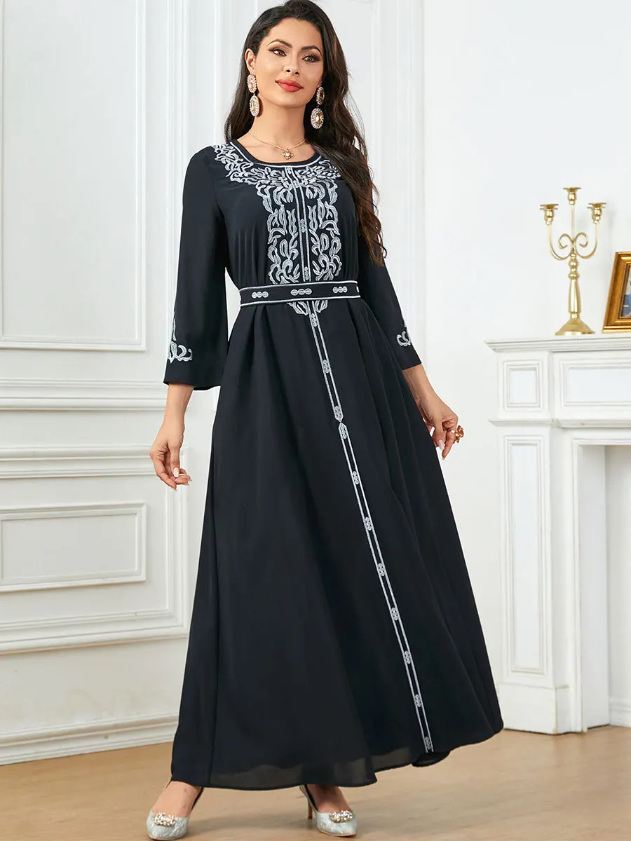 Siskakia Ramadan Dubai Embroidery O-Neck Long Dresses With Sashes For Muslim Kebaya Women’s Elegant Fashion Abayas