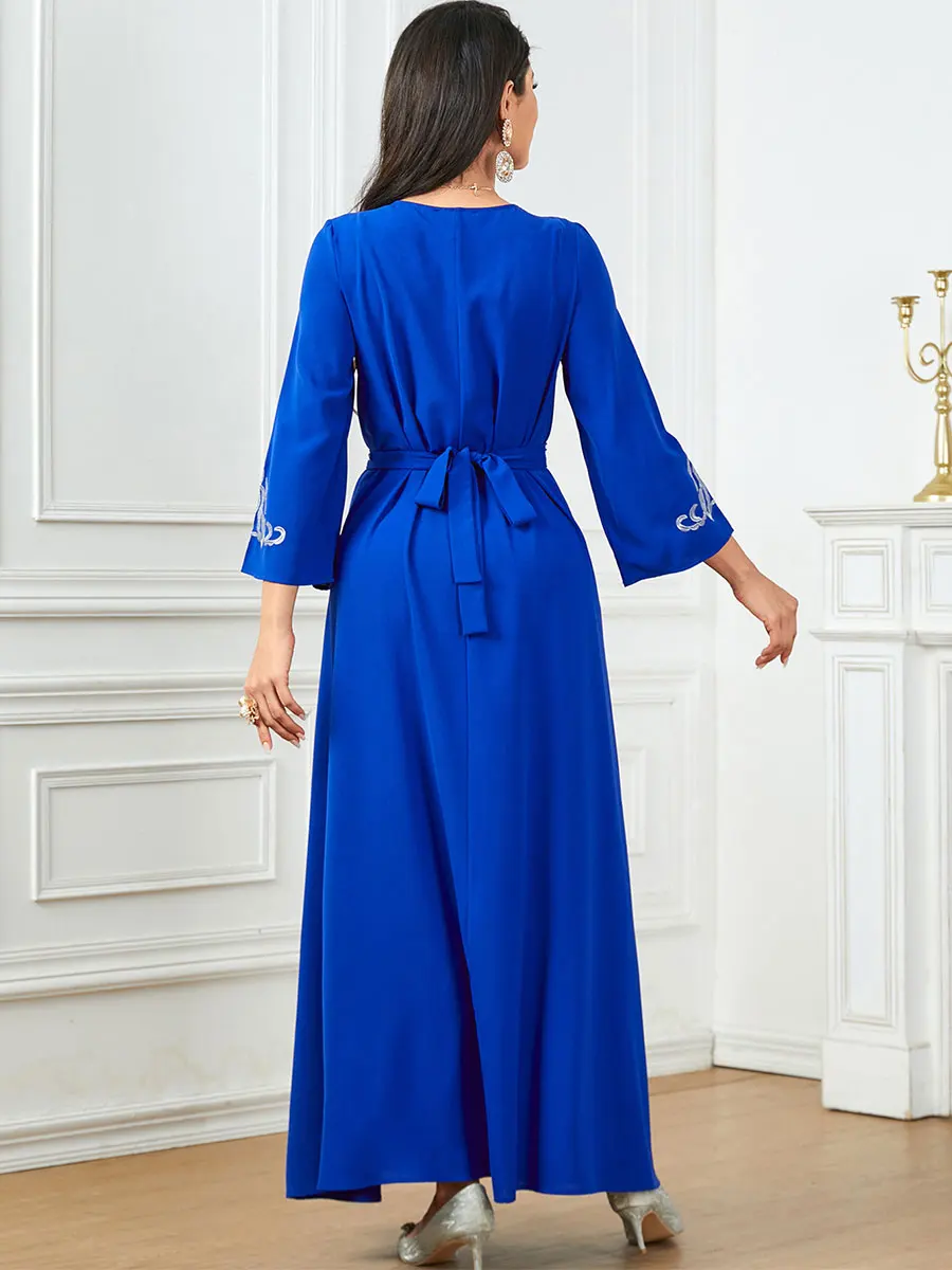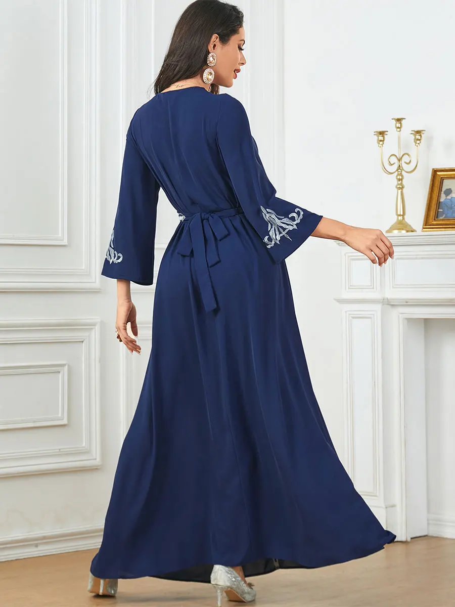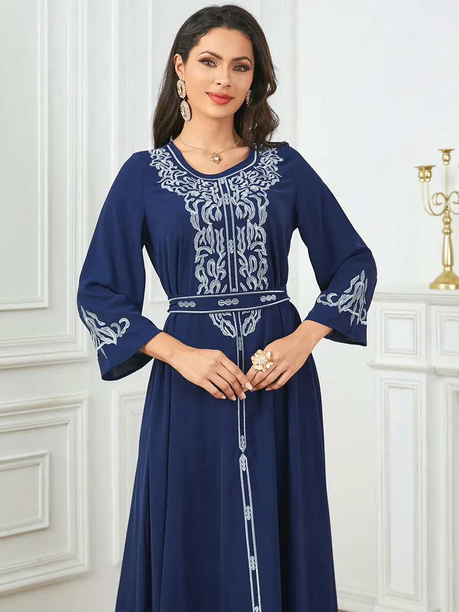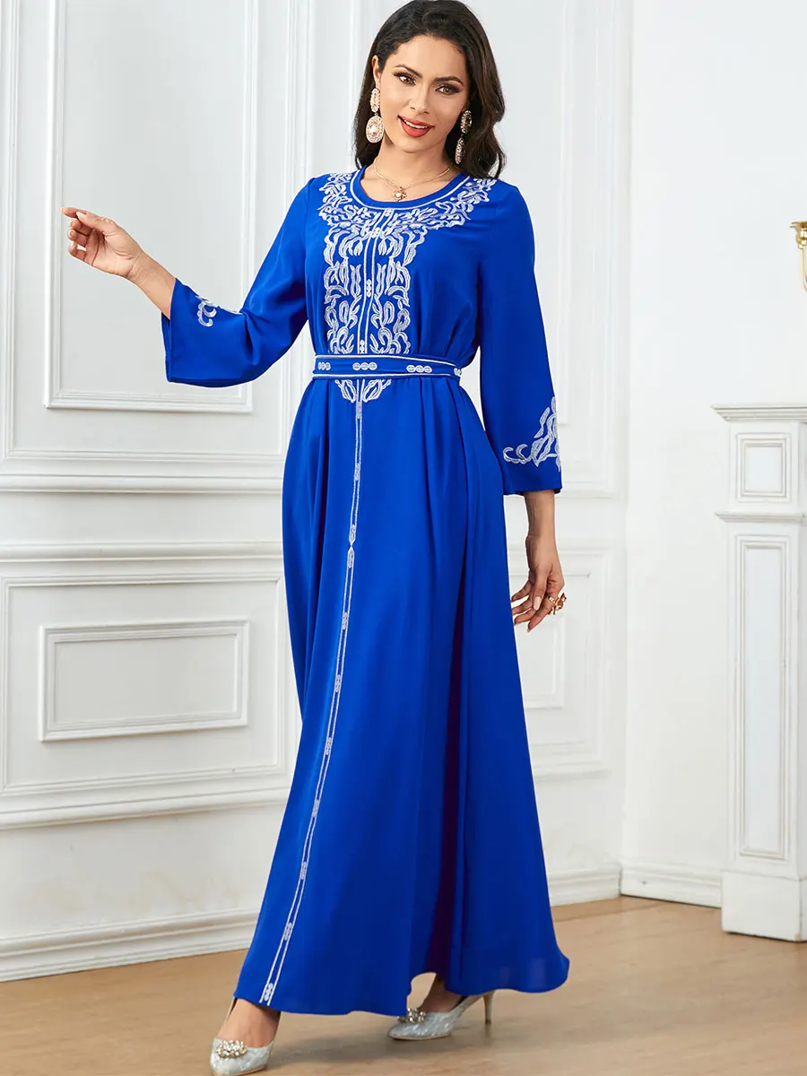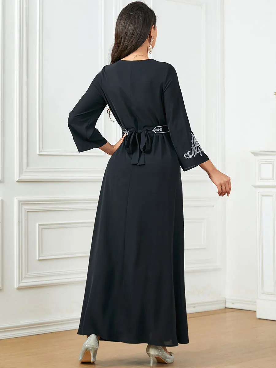 Siskakia Ramadan Dubai Embroidery O-Neck Long Dresses With Sashes For Muslim Kebaya Women’s Elegant Fashion Abayas