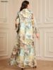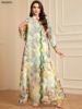 Siskakia Ramadan Dubai Floral Print Long Dress Sequins Patchwork Abayas Mesh Kebaya For Muslim Women’s Casual Loose Clothing