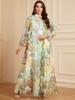 Siskakia Ramadan Dubai Floral Print Long Dress Sequins Patchwork Abayas Mesh Kebaya For Muslim Women’s Casual Loose Clothing