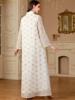 Siskakia Ramadan Dubai Patchwork Beaded abaya Mesh Loose Muslim Elegant Women Evening Dresses