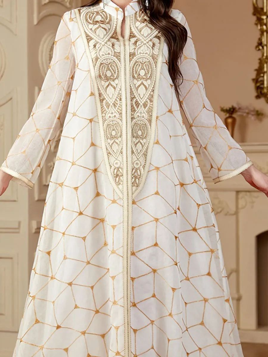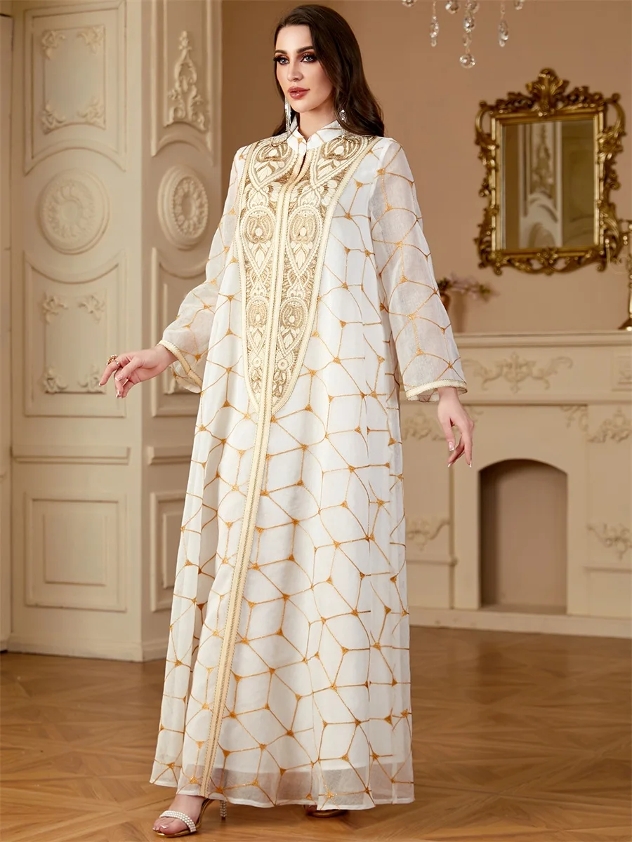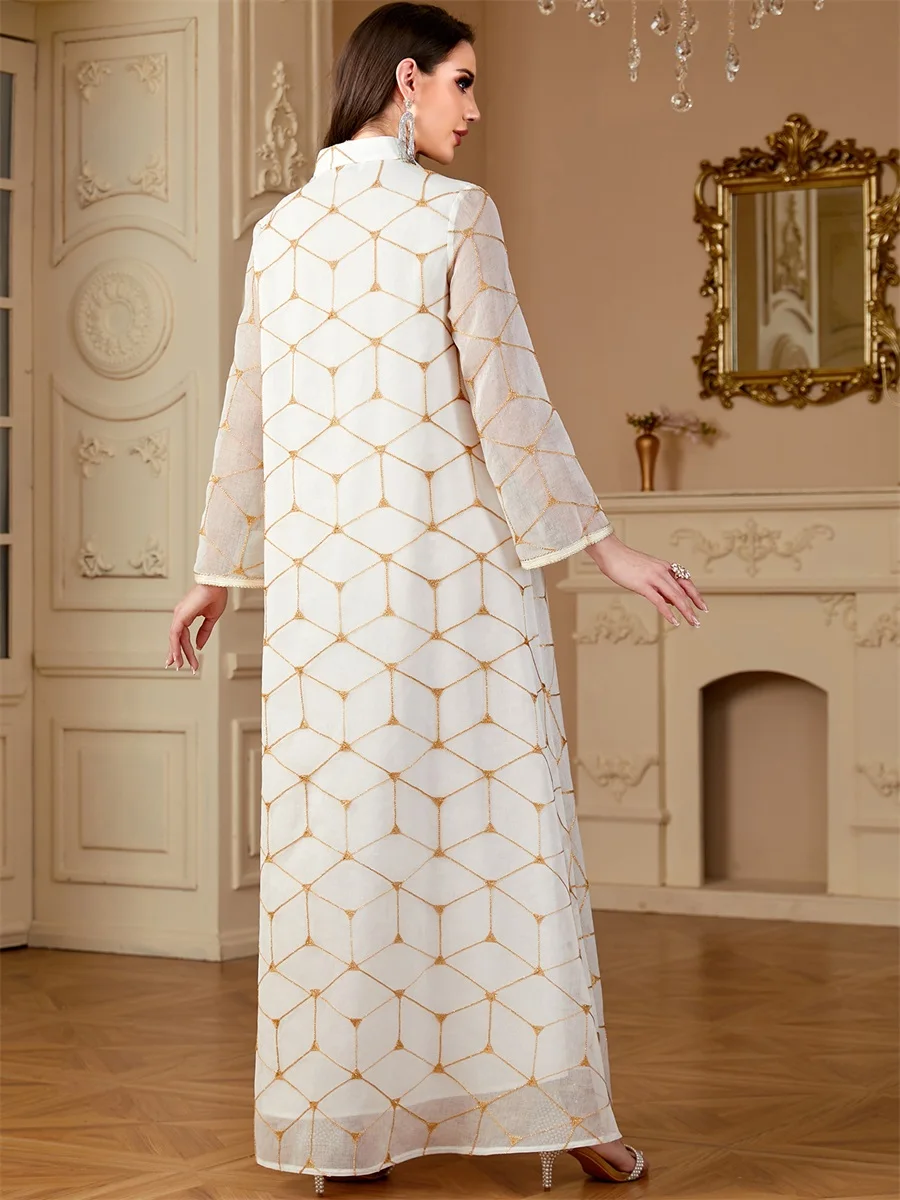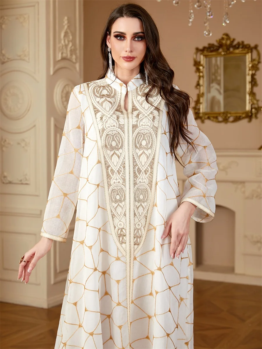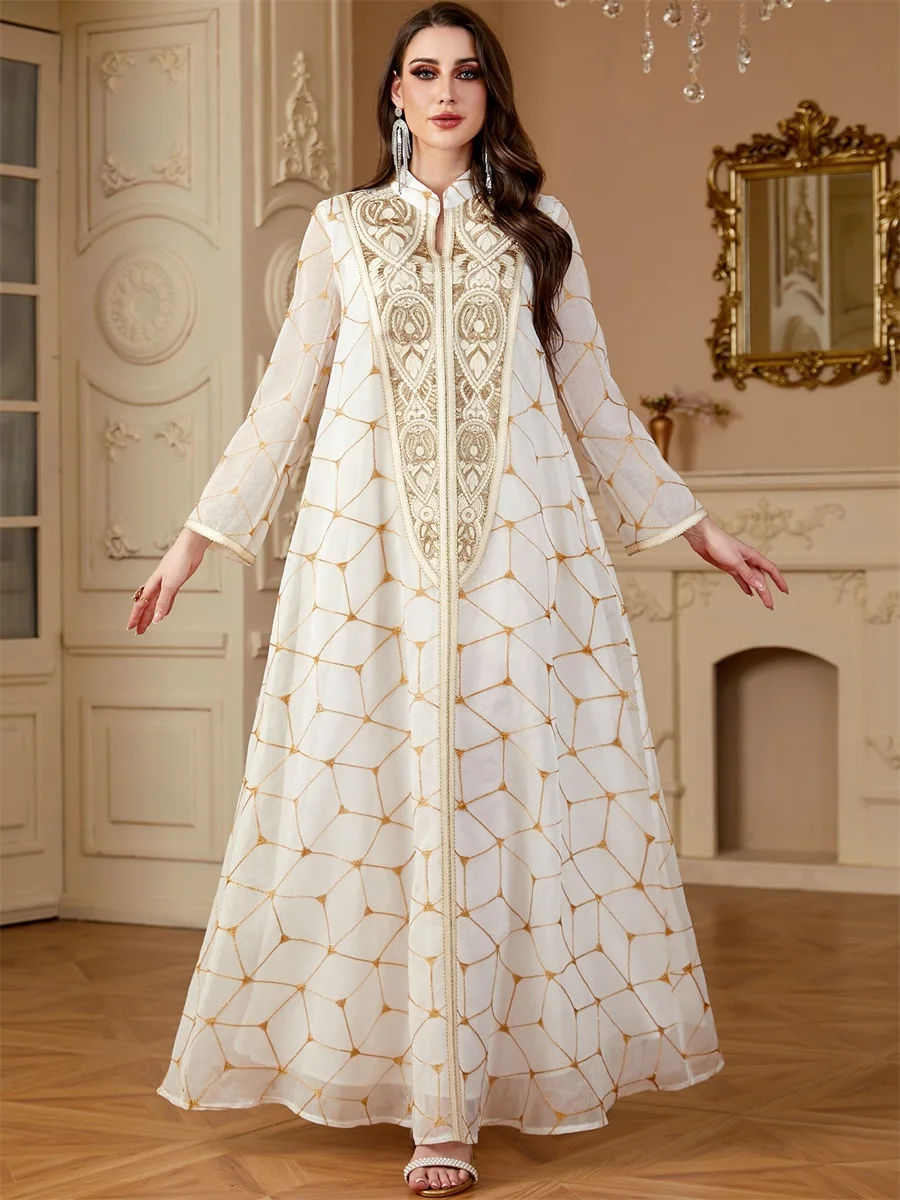 Siskakia Ramadan Dubai Patchwork Beaded abaya Mesh Loose Muslim Elegant Women Evening Dresses