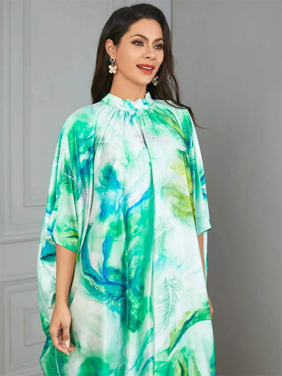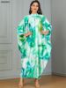 Siskakia Ramadan Muslim Floral Print Abaya Batwing Sleeve Maxi Dress Dubai Marocain Tie collar Elegant Casual Kaftan