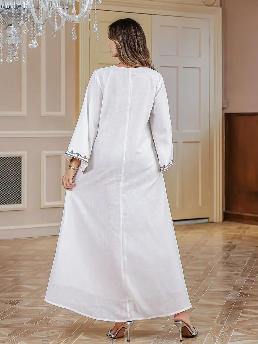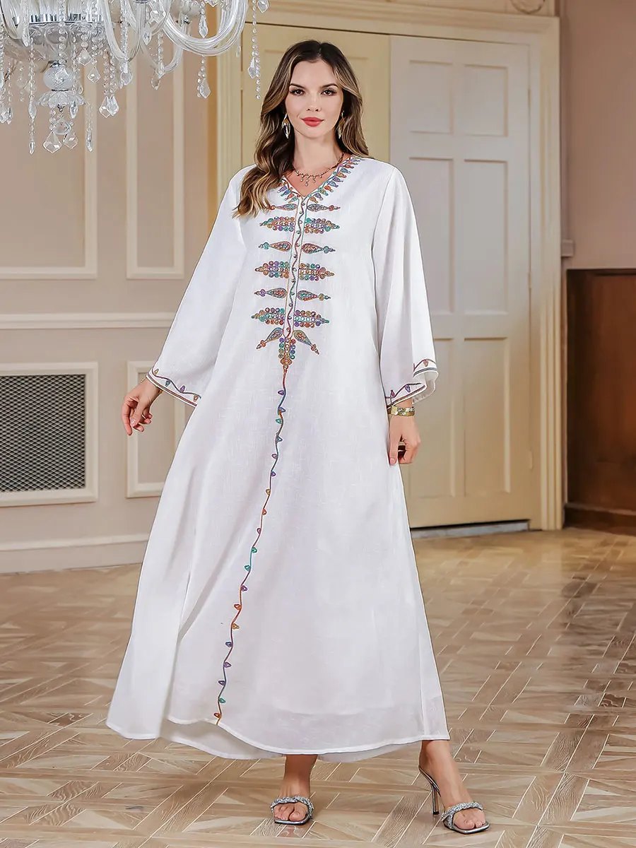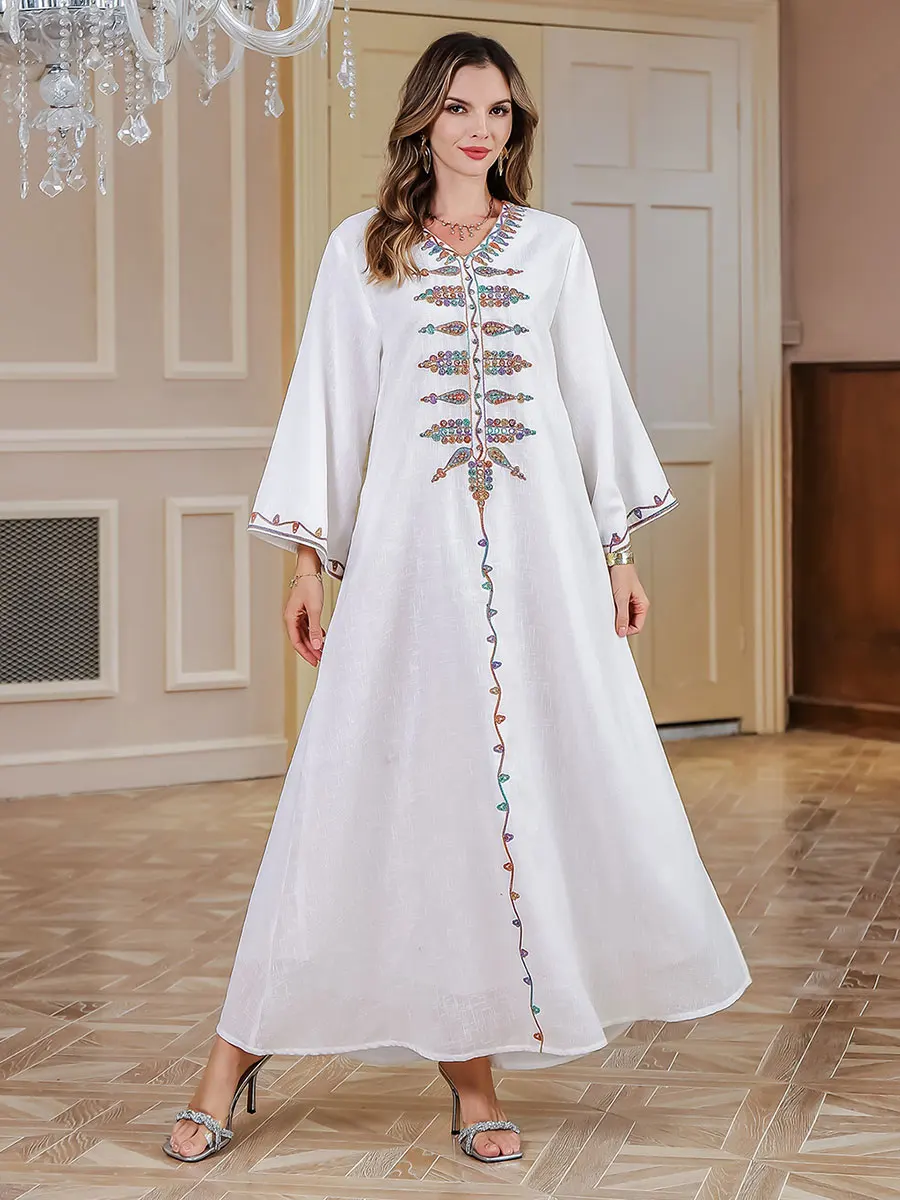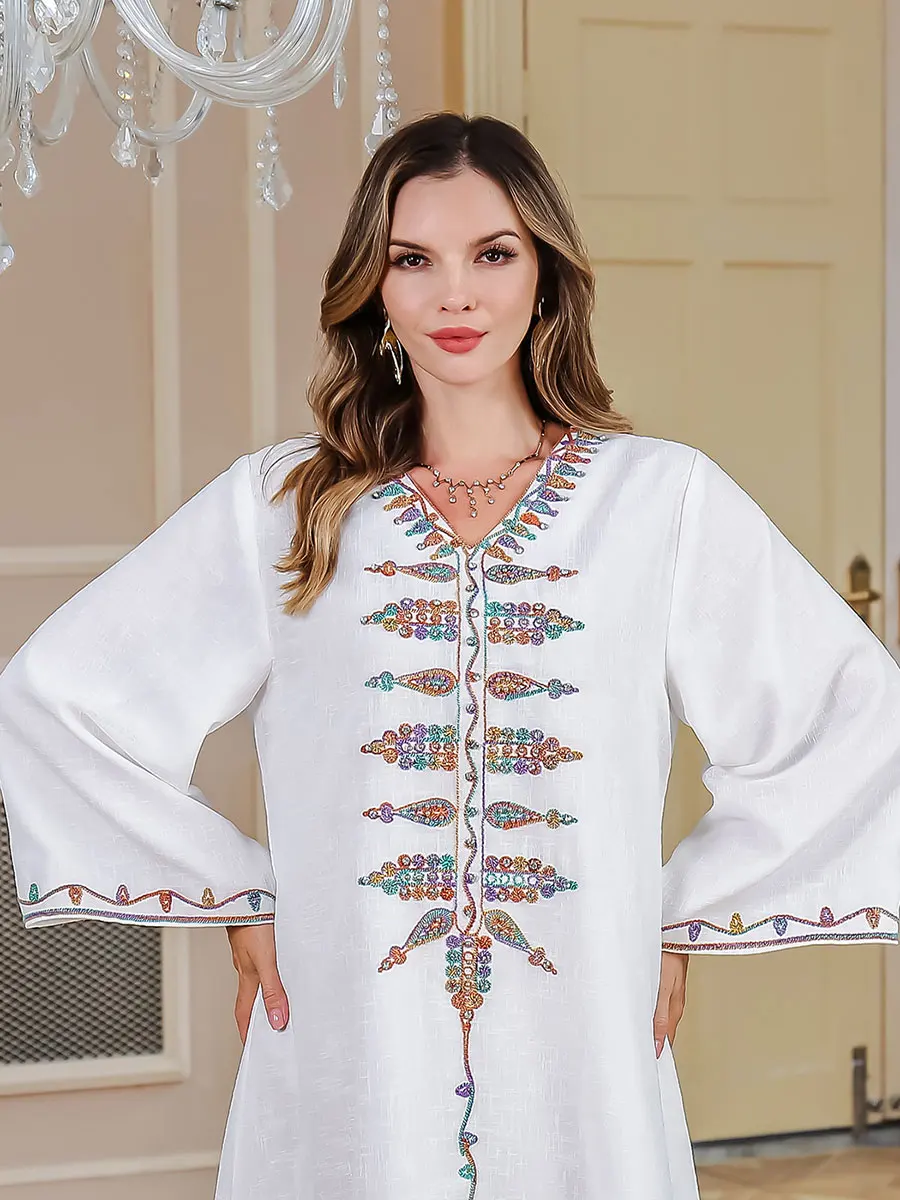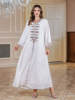 Siskakia Ramadan Muslim V-Neck Embroidery Maxi Abaya Loose Caftan Marocain Dresses For Women Gala