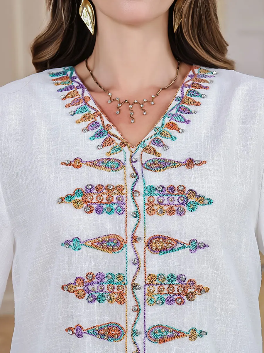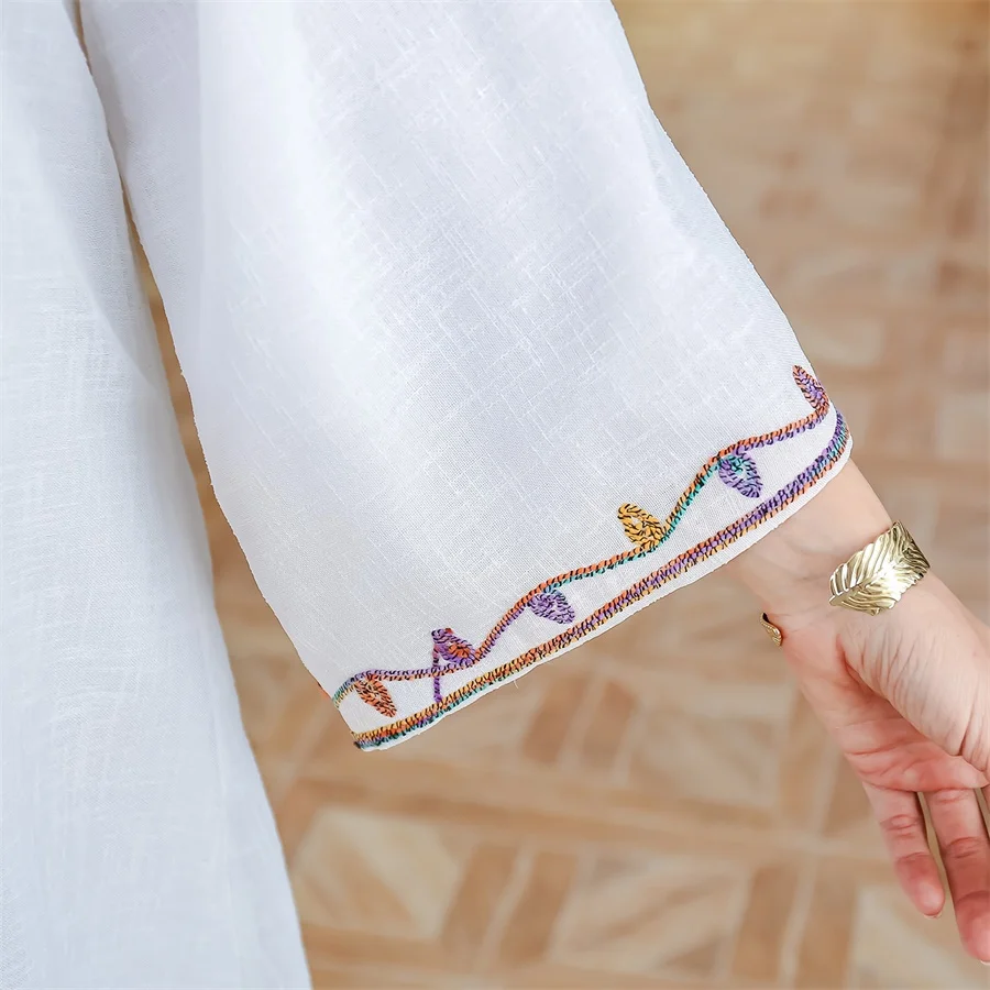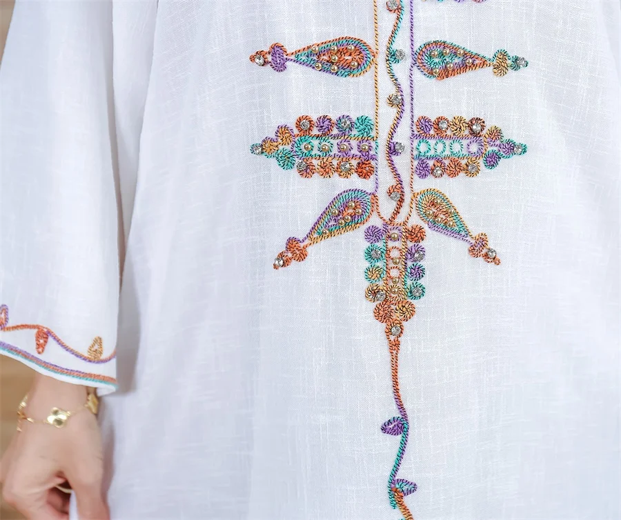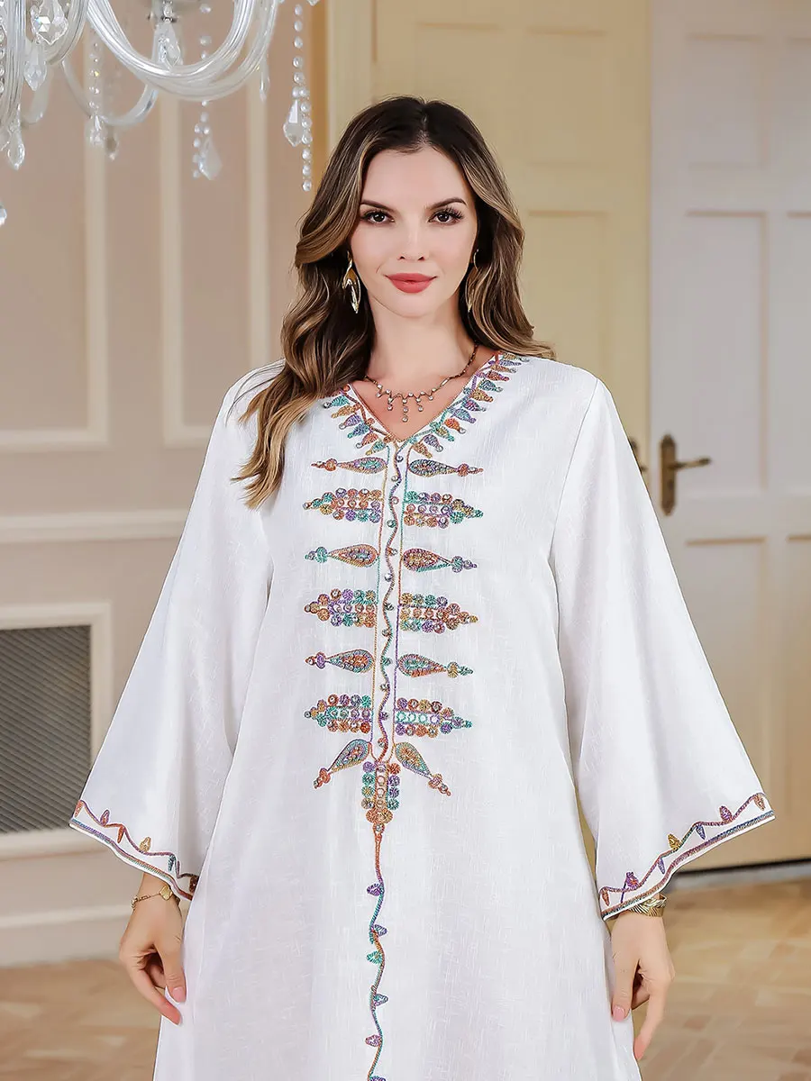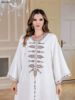 Siskakia Ramadan Muslim V-Neck Embroidery Maxi Abaya Loose Caftan Marocain Dresses For Women Gala