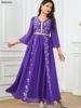 Siskakia Ramadan Muslim Women’s Embroidery Mesh Sleeve Abaya V-Neck Belt Included Maxi Dress Dubai Polyester Kaftan