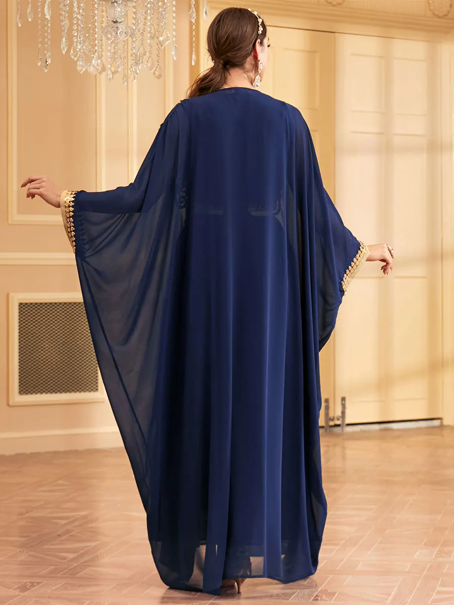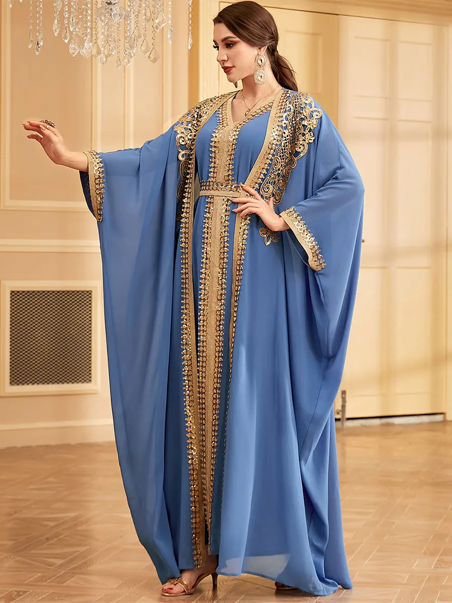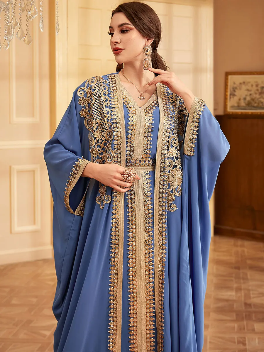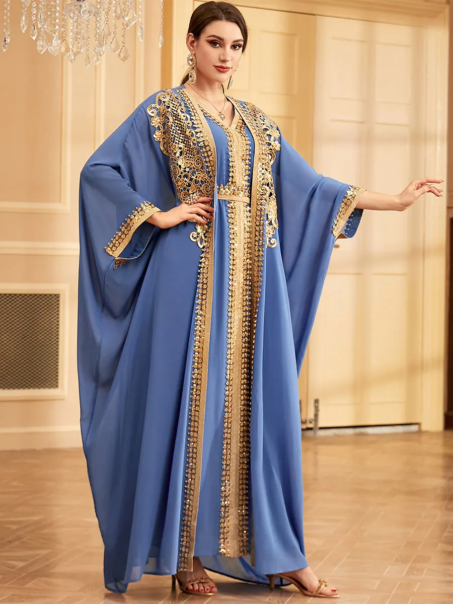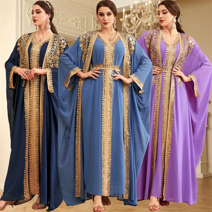 Siskakia Ramadan Sequins Dubai Abayas Arab Tunics Batwing Sleeve Dresses For Women Gala Two pieces Moroccan Elegant Kebaya