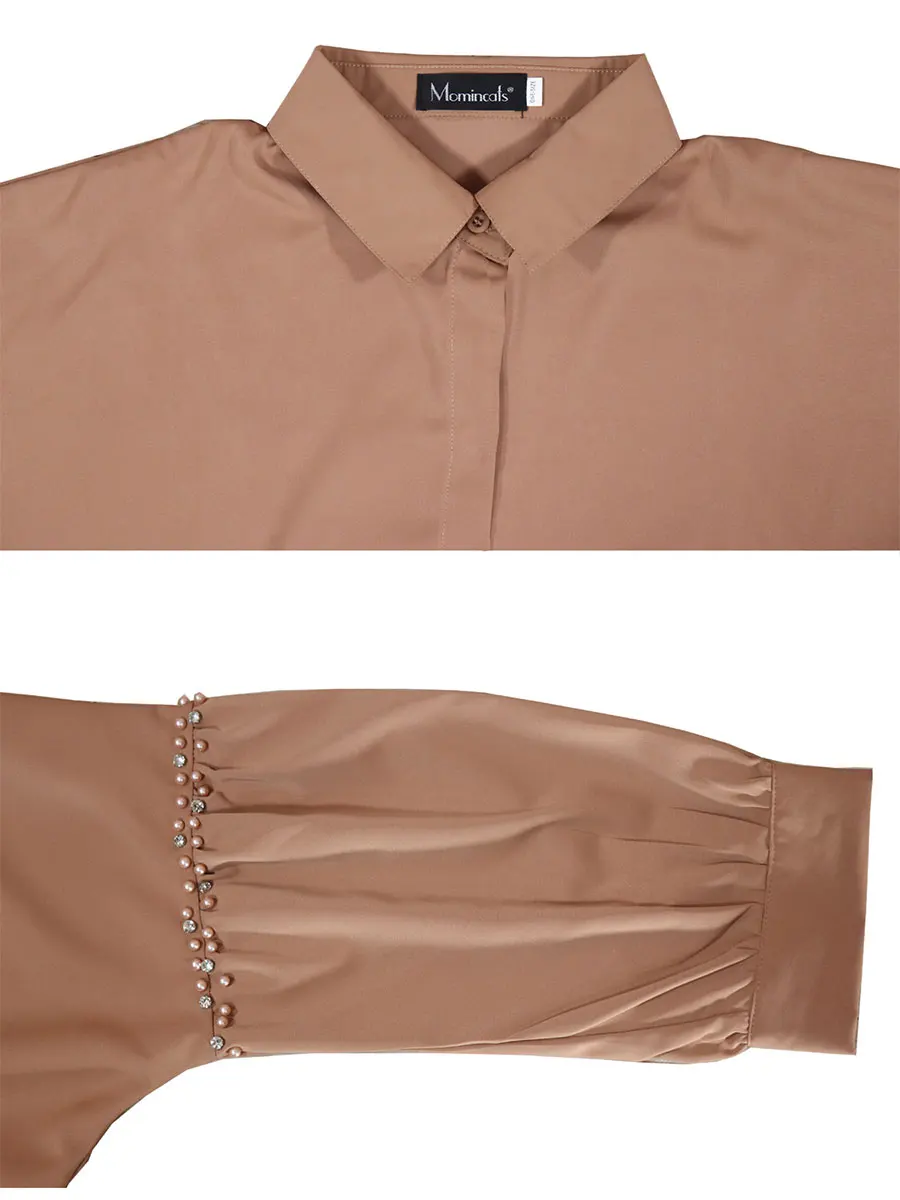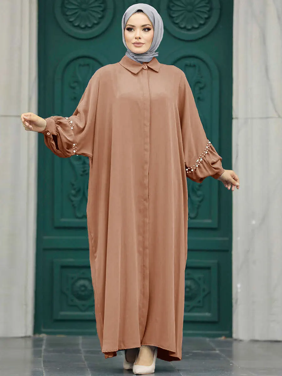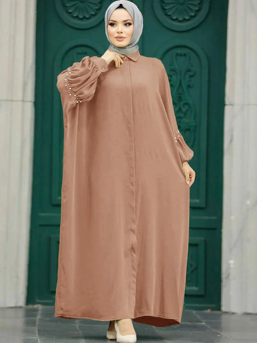 Siskakia Solid Muslim Woman Elegant Beaded Cardigan Long Dress With Loose Batwing Sleeve Moroccan Dubai Saudi Kebaya Robe 2024