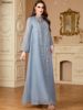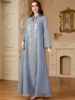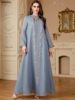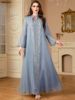 Siskakia Women’s Jalabiya Ramadan Dubai Sequins Mesh Long Dresses Modest Beading Patchwork Abaya Solid Kaftan