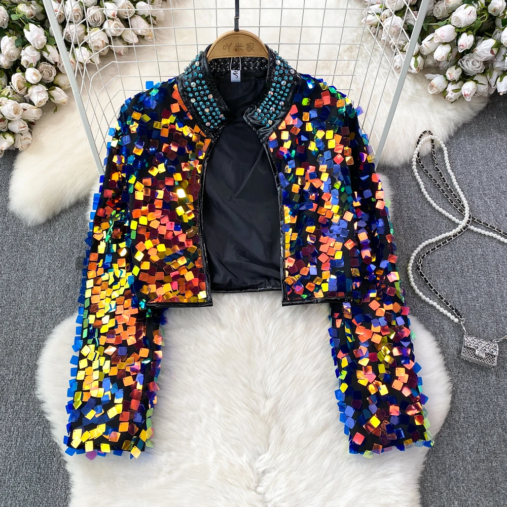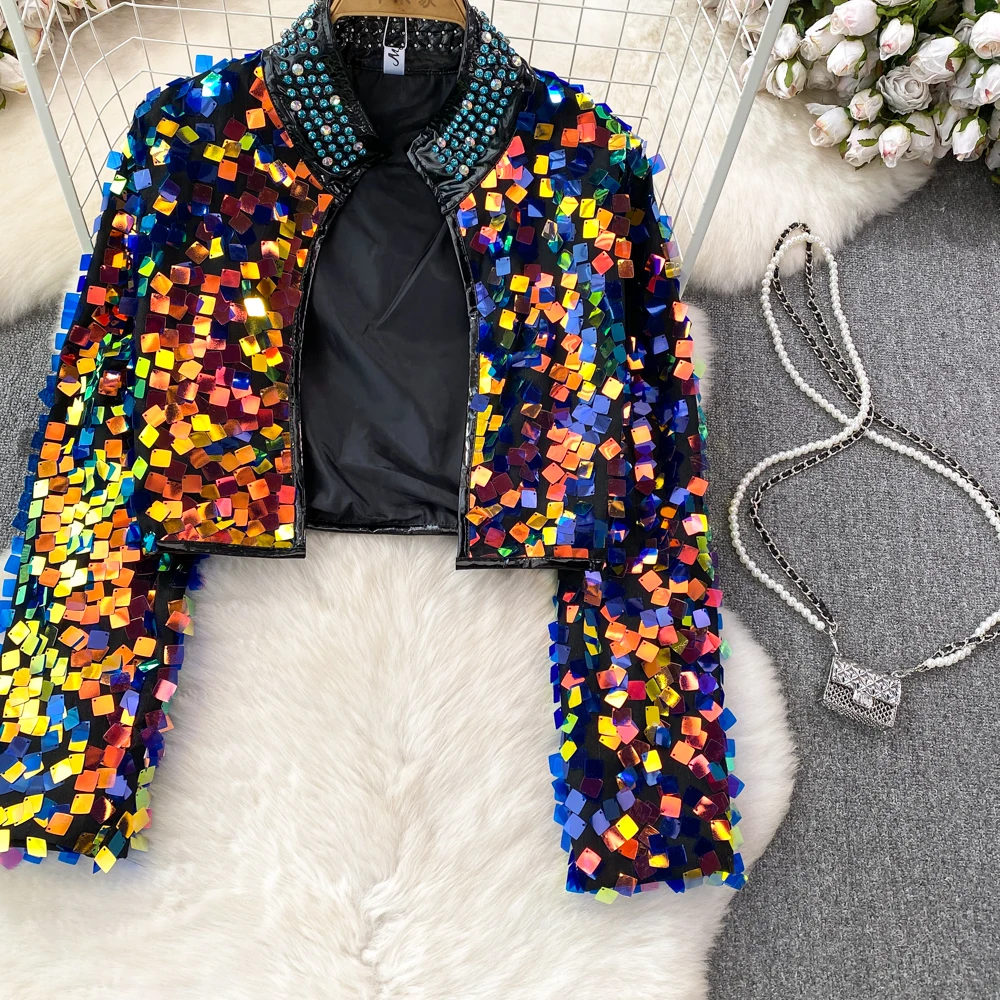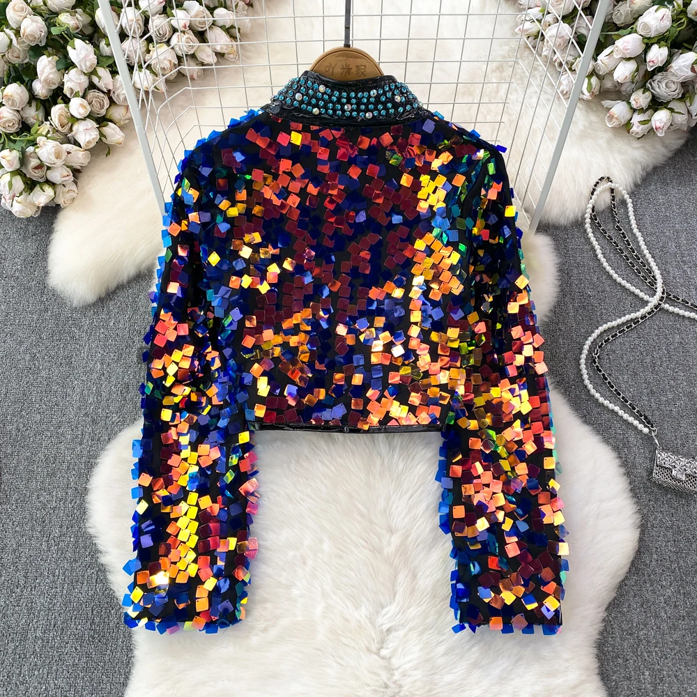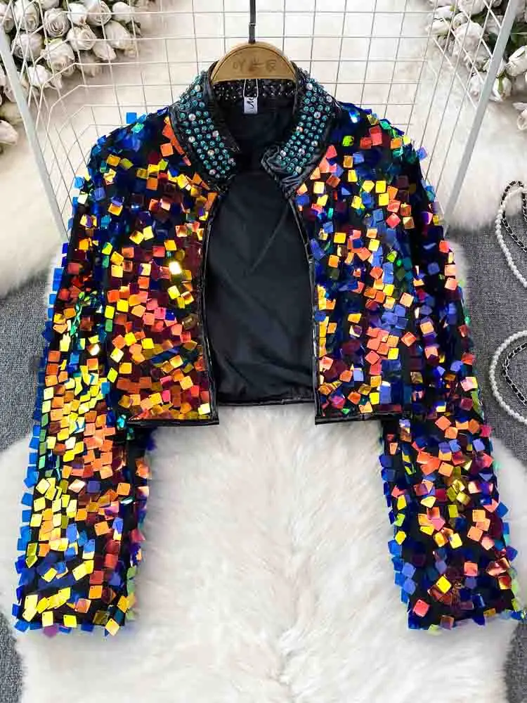 Street colored acrylic sequins, personalized and trendy jacket jacket jacket, women’s casual top