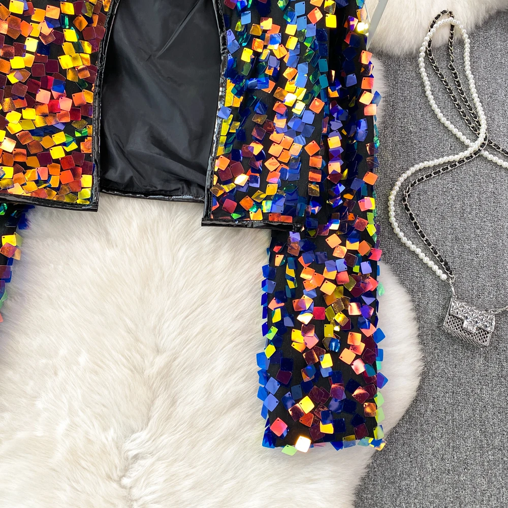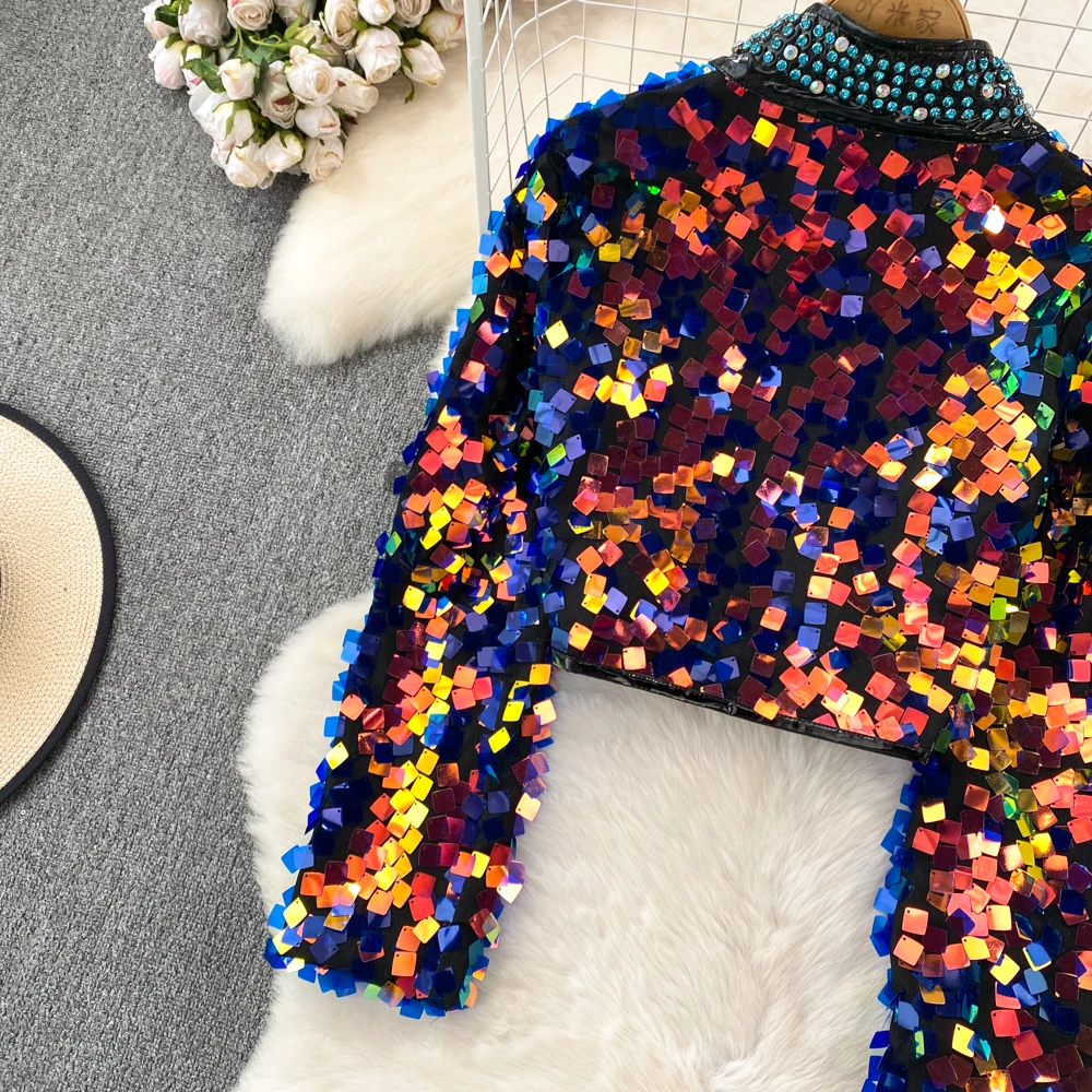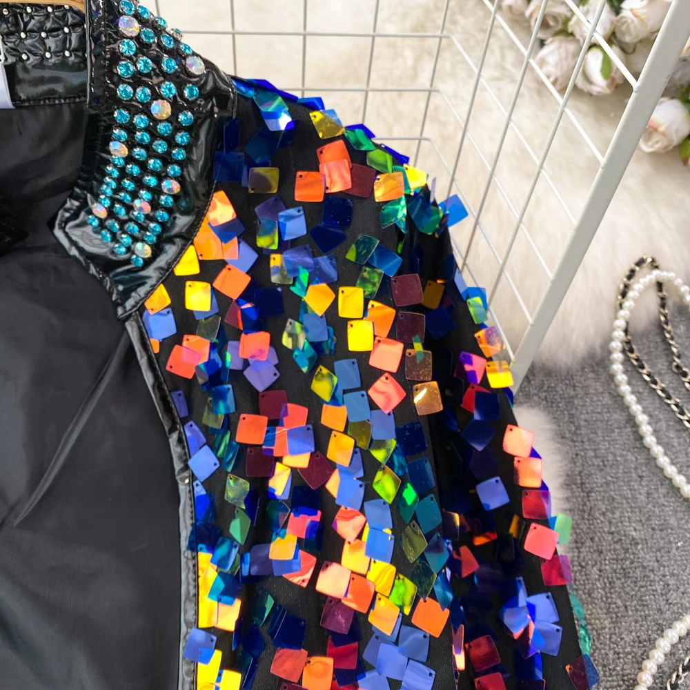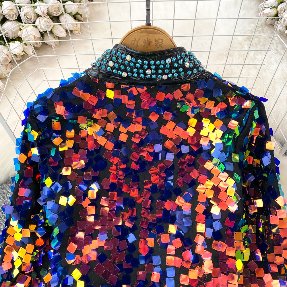 Street colored acrylic sequins, personalized and trendy jacket jacket jacket, women’s casual top