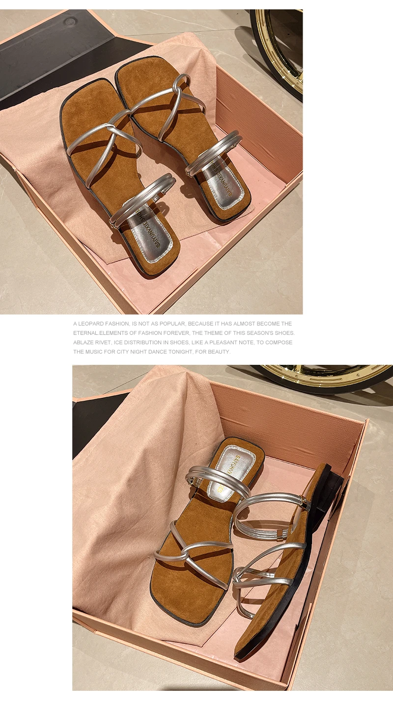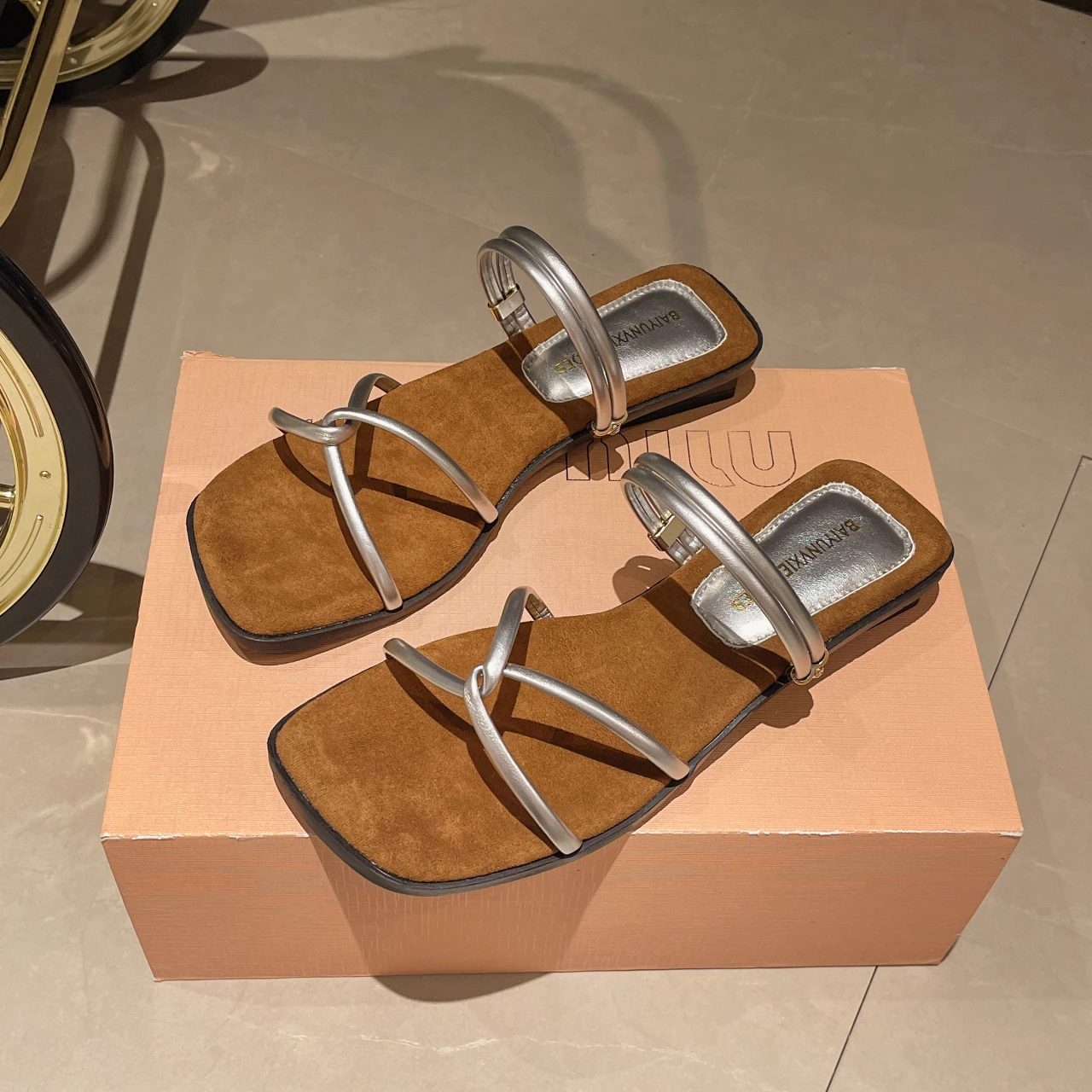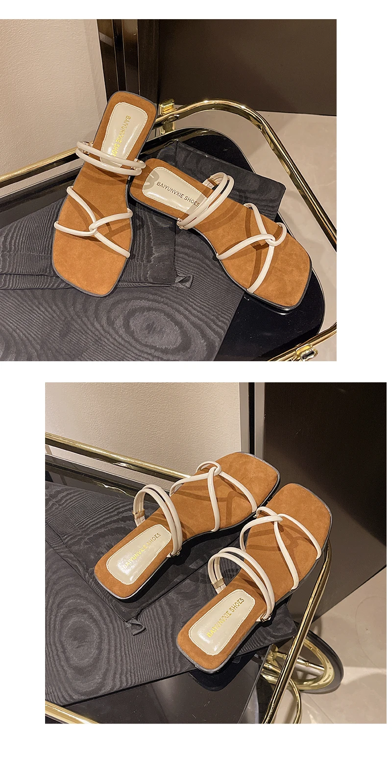 Summer Fashion Square Toe Open Toe Womens Slippers Elegant Narrow Strap High Heel Sandals Outdoor Beach Vacation Women’s Sandals