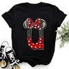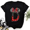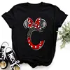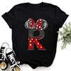 Summer Short Sleeve Disney Children Clothing Minnie Mouse Letters Print A-Z Print Kid Cotton T-shirt Y2k Tops Boy Girl Tshirt