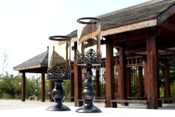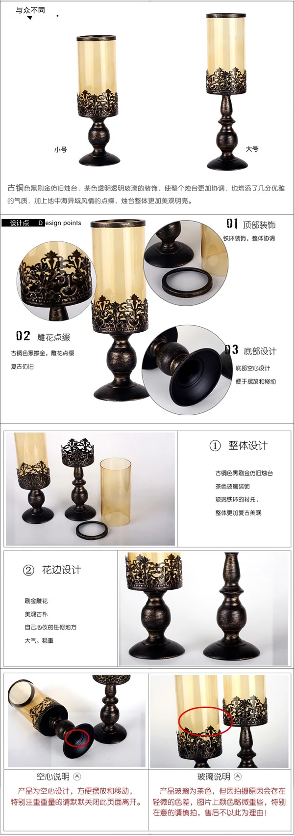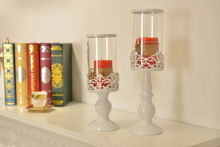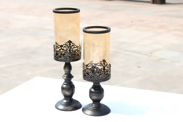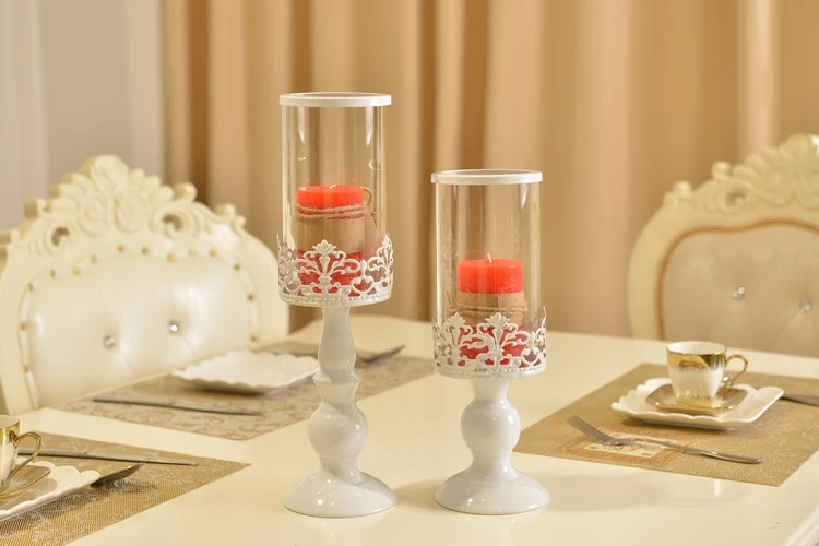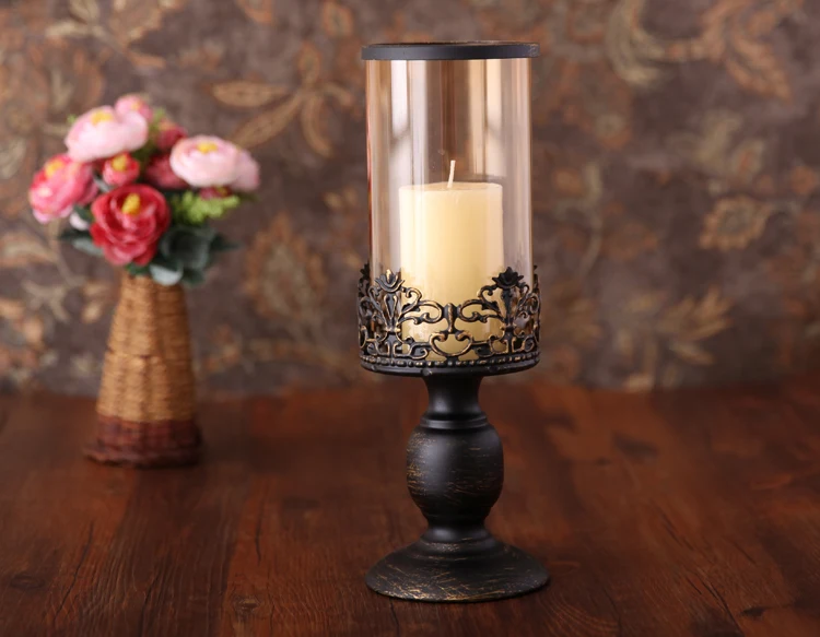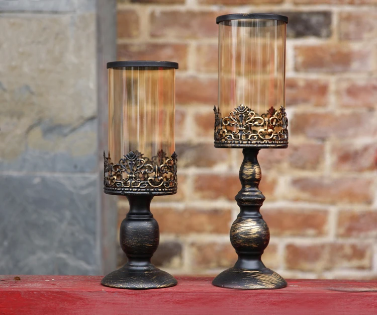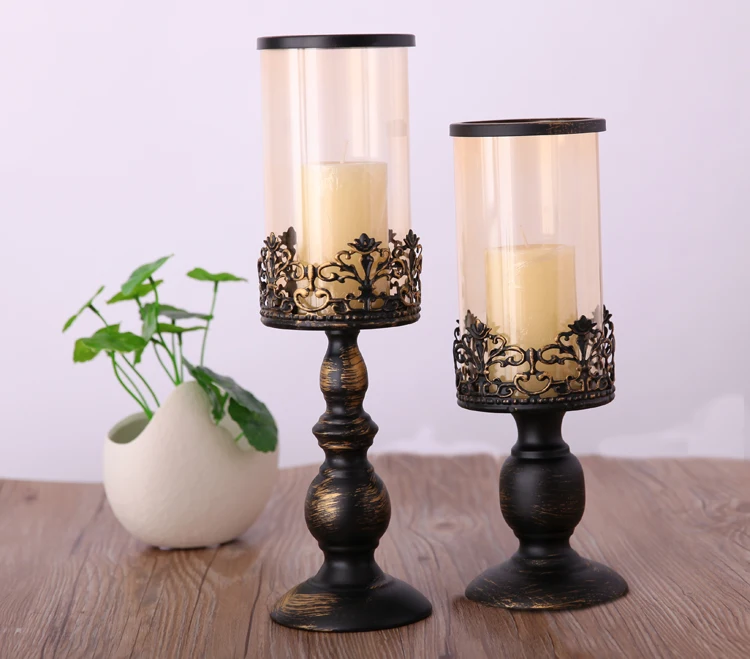 حاملي الشموع طويل القامة النمط الأوروبي خمر حاملي الشموع اسطوانة الذهب شفافة عمود Kerzenhalter الزفاف الديكور