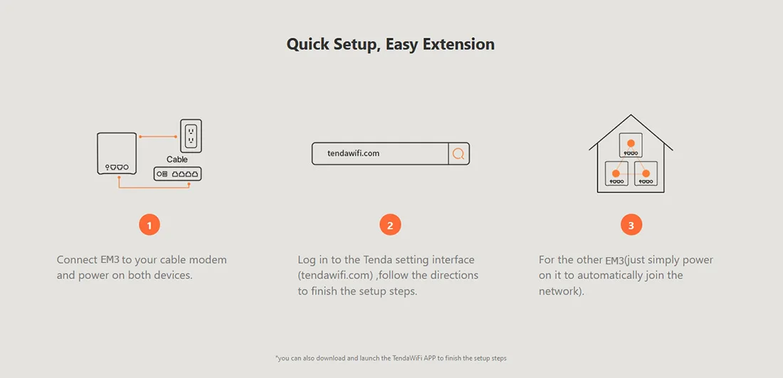 * يمكنك أيضا تحميل وإطلاق التطبيق Tenda واي فاي لإنهاء خطوات الإعداد