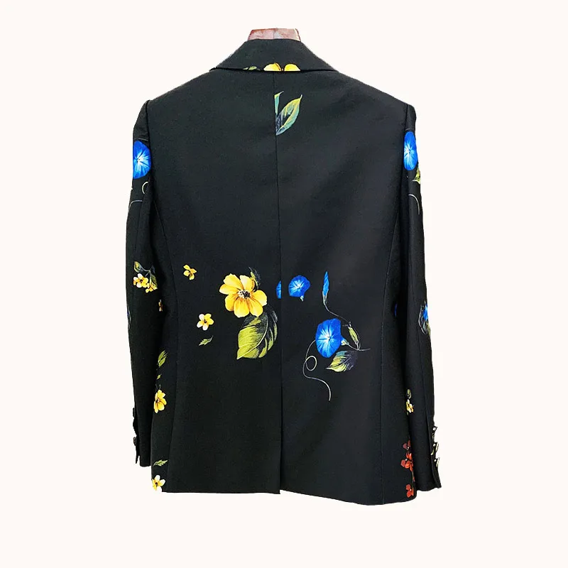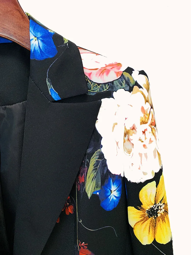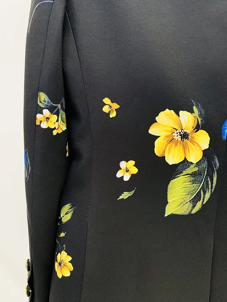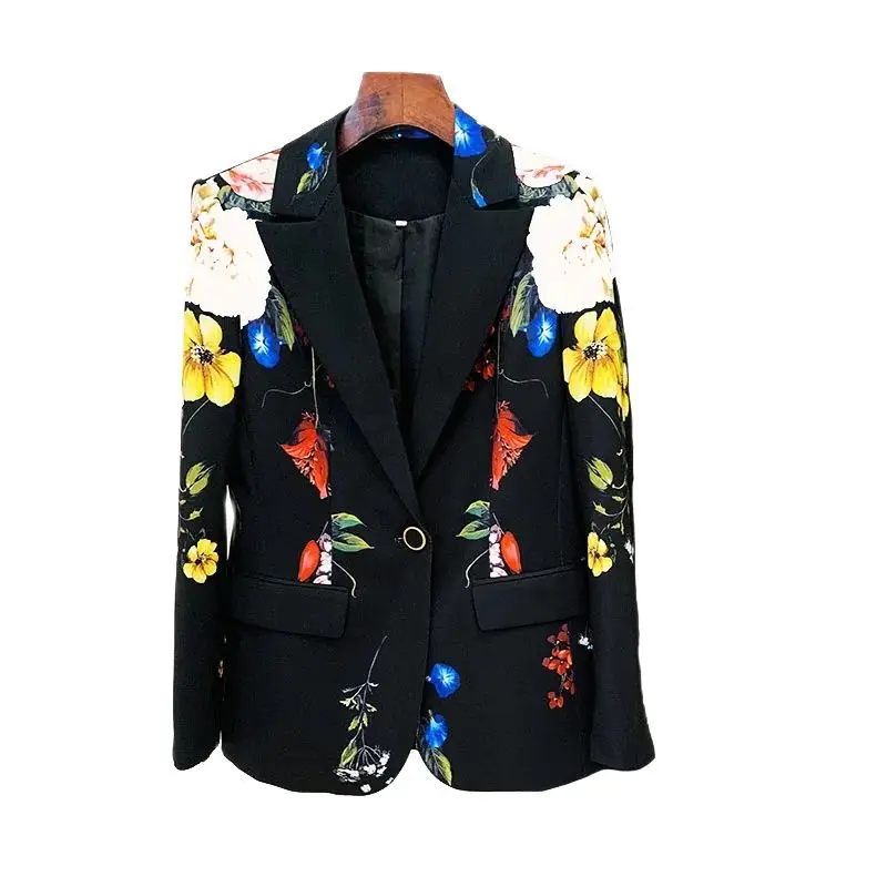 The latest designer runway set for women in 2024, featuring a single button printed fashionable jacket and suit