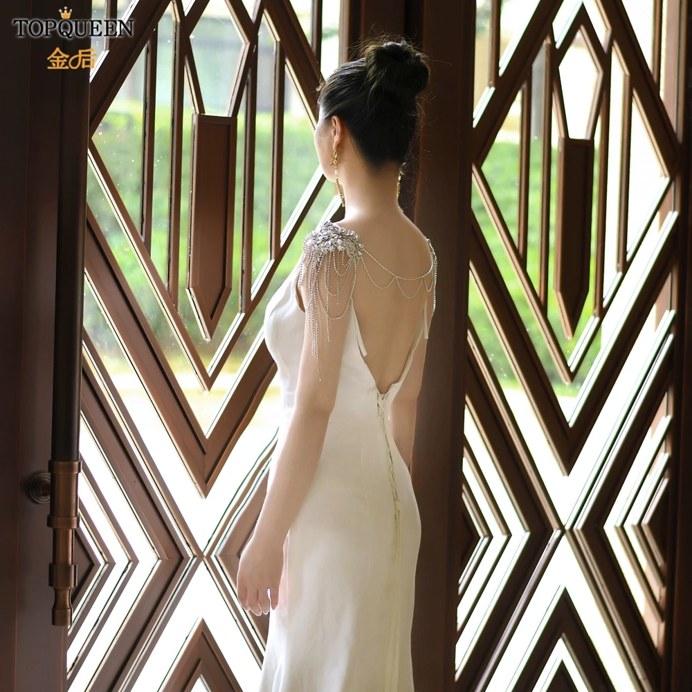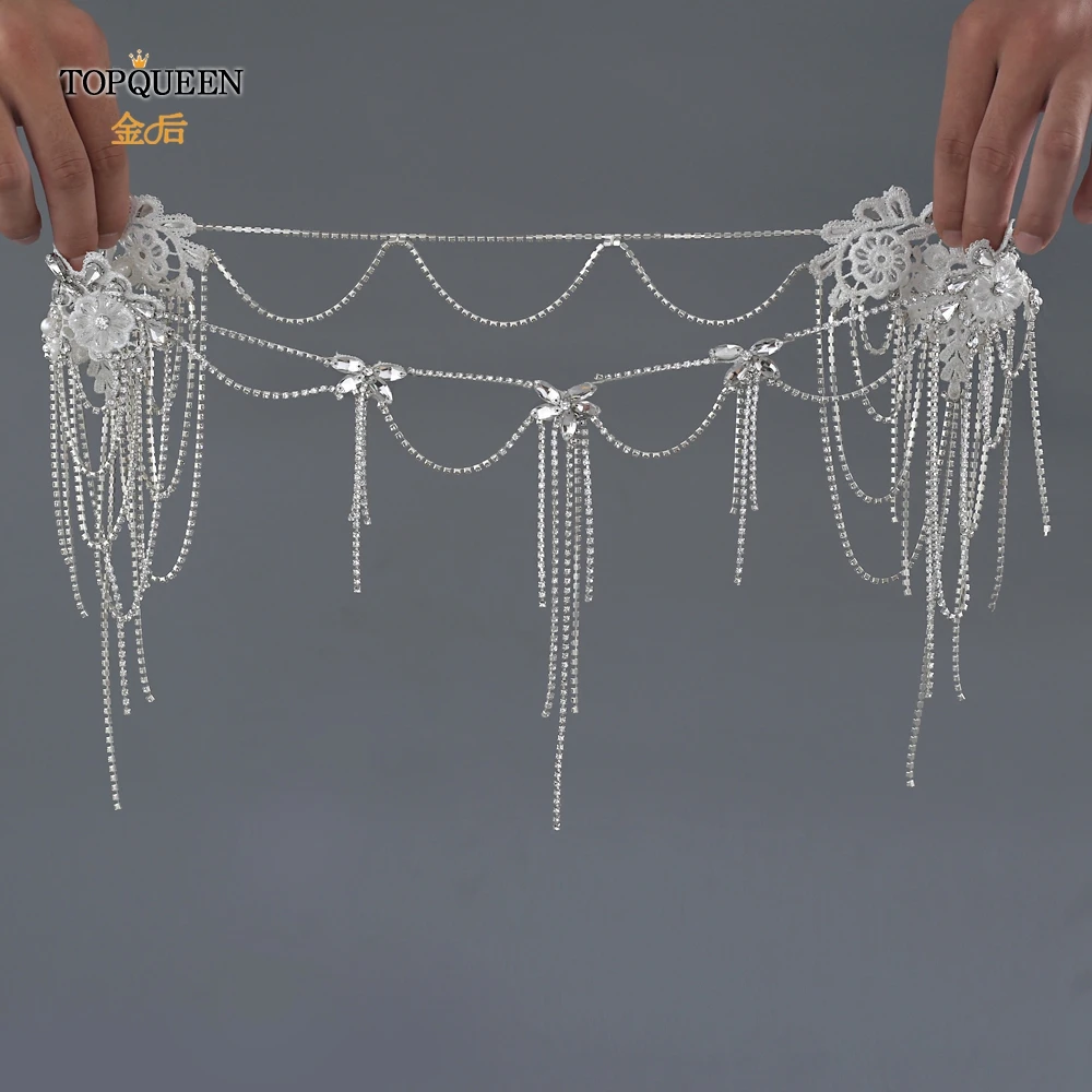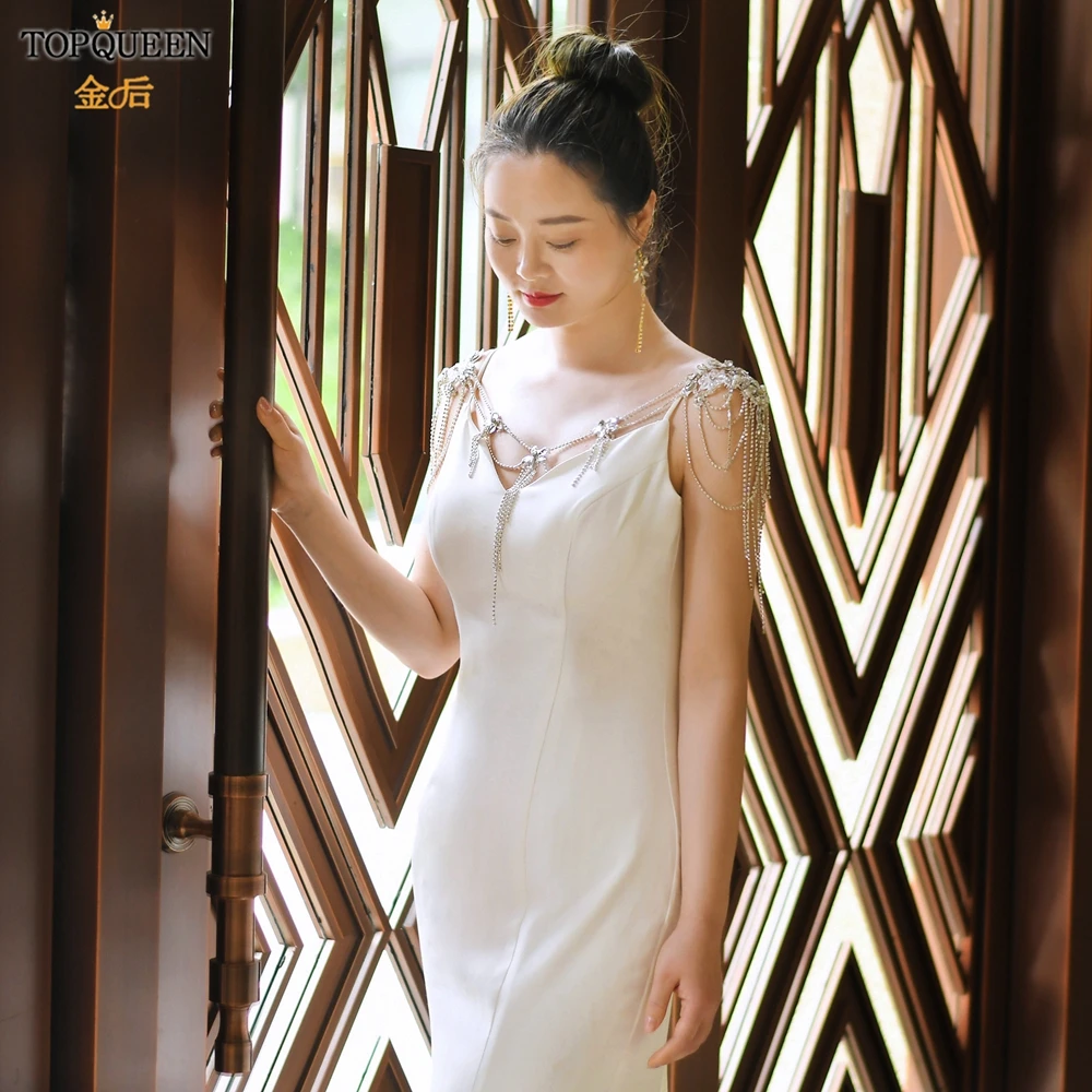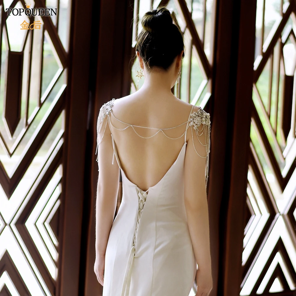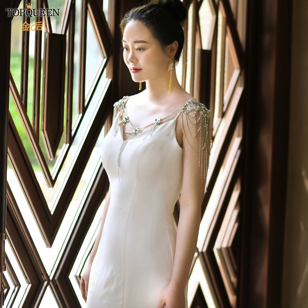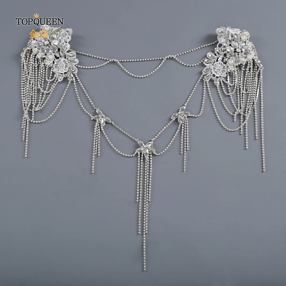 TOPQUEEN SG11 الزفاف الكتف سلسلة حجر الراين شرابة متعدد الطبقات قلادة كريستال مطرز الأبيض الزفاف يلتف الديكور اكسسوارات