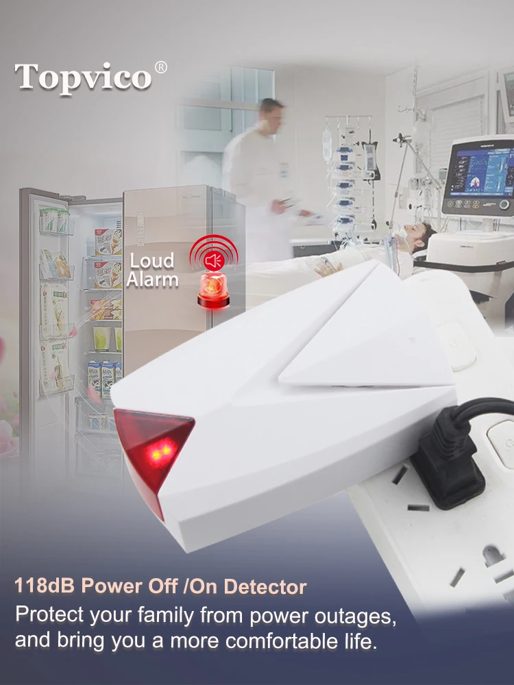Topvico لاسلكي خارج السلطة/على الكاشف التيار المتناوب 220 فولت انقطاع التيار الكهربائي ماس كهربائى إنذار اختبار الاستشعار الرئيسية محطة فرعية إنذار