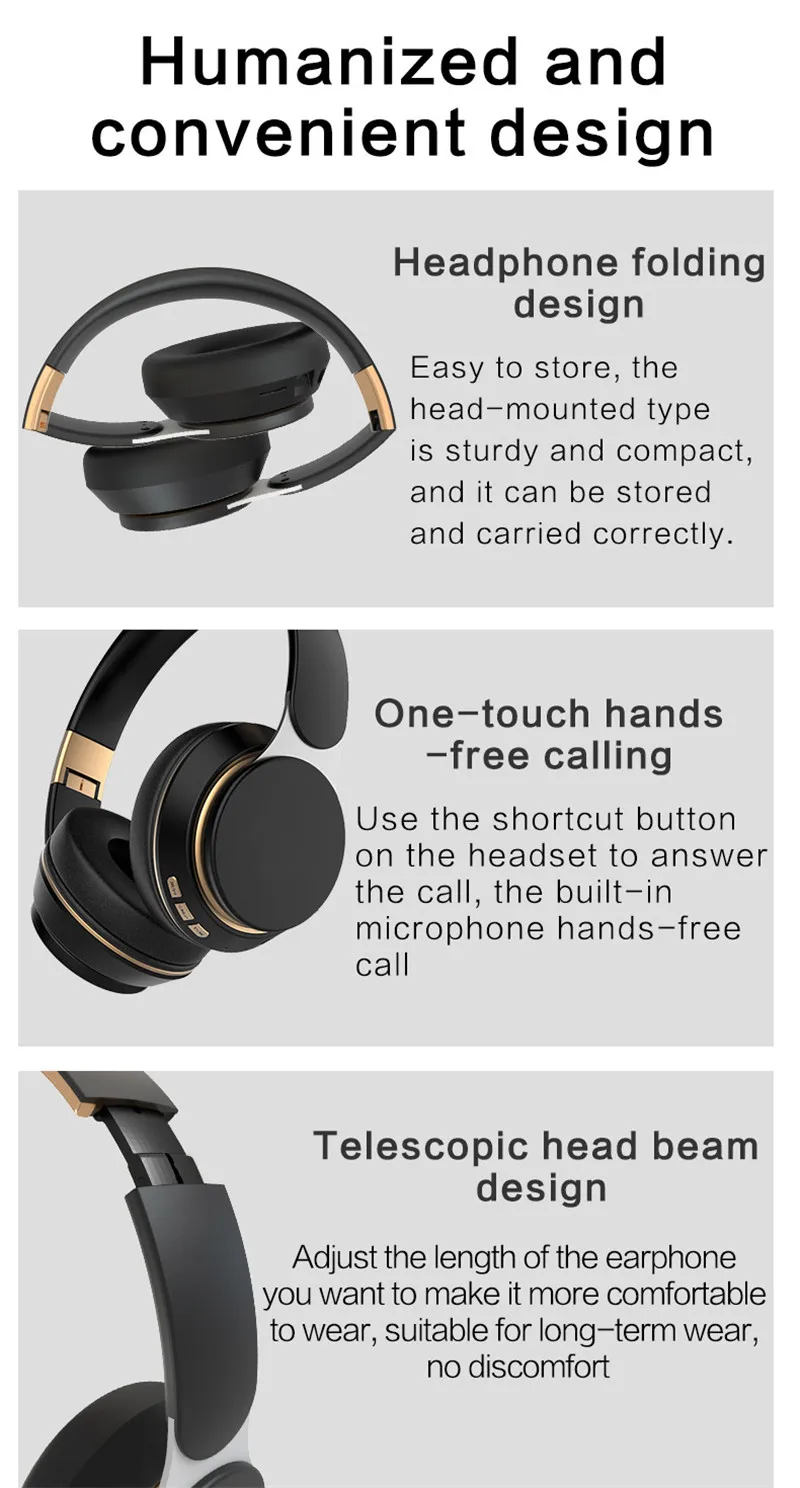 Tourya-سماعات لاسلكية بلوتوث قابلة للطي, سماعات مع للهاتف، الكمبيوتر التلفزيون شاومي هواوي آيفون ، مع ألوان مختلفة