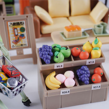 Miniature Furniture 1:12 Scale Mini Food Fruits Shelf Snacks Bread Shopping Cart Mini Computer Dollhouse Scene Model Kitchen Toy