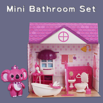 3D Cardboard Puzzle Koala Bathroom Dollhouse 1:12 Mini Washbasin Bathtub Model Performance Toy Miniature Furniture Gift