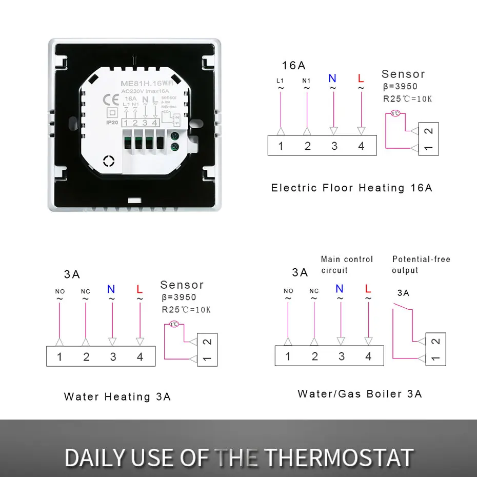 ملاحظة: كما ترموستات لديه لوحة مرآة الزجاج ، قد يتغير اللون في بيئات مختلفة. عند تثبيته على الحائط وتشغيله ، سيتحول إلى أسود داكن.