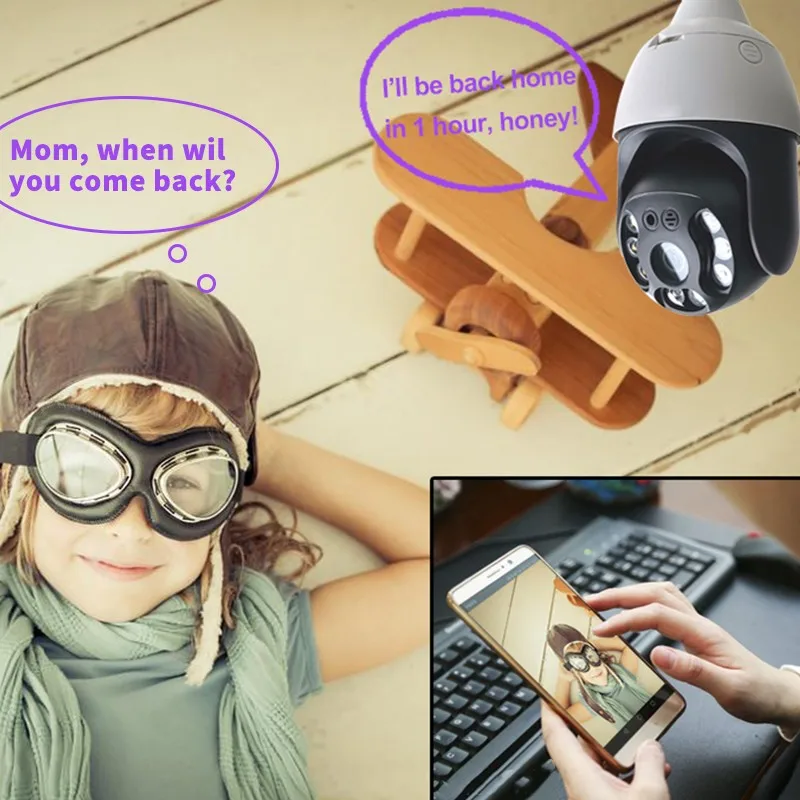 بنيت الكاميرا مع ميكروفون ومكبر الصوت. حتى تتمكن من التحدث مع أطفالك عبر الهاتف الذكي الخاص بك عن بعد وقتما تشاء