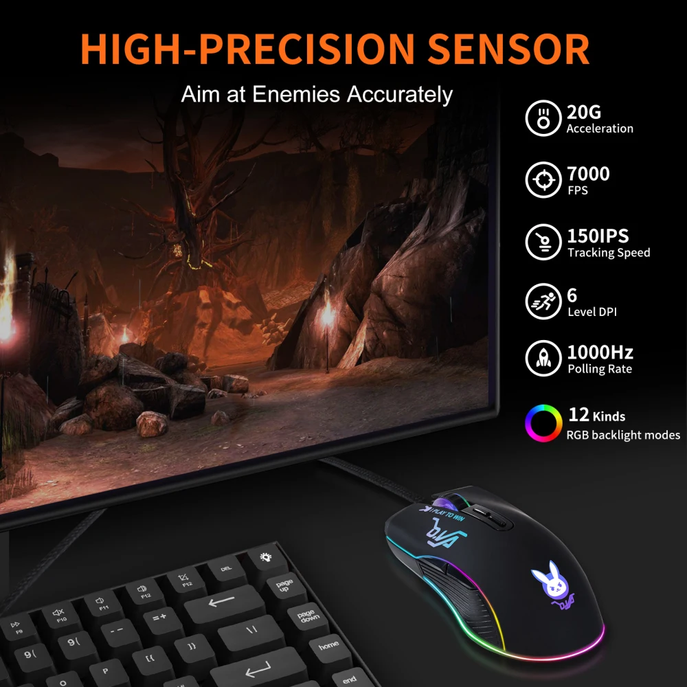 TYPE-C/USB RGB لعبة ماوس 7200 ديسيبل متوحد الخواص عالية الدقة ماوس بندقية الضغط ماكرو تعريف السلكية ماوس قابلة للشحن ماوس الفئران