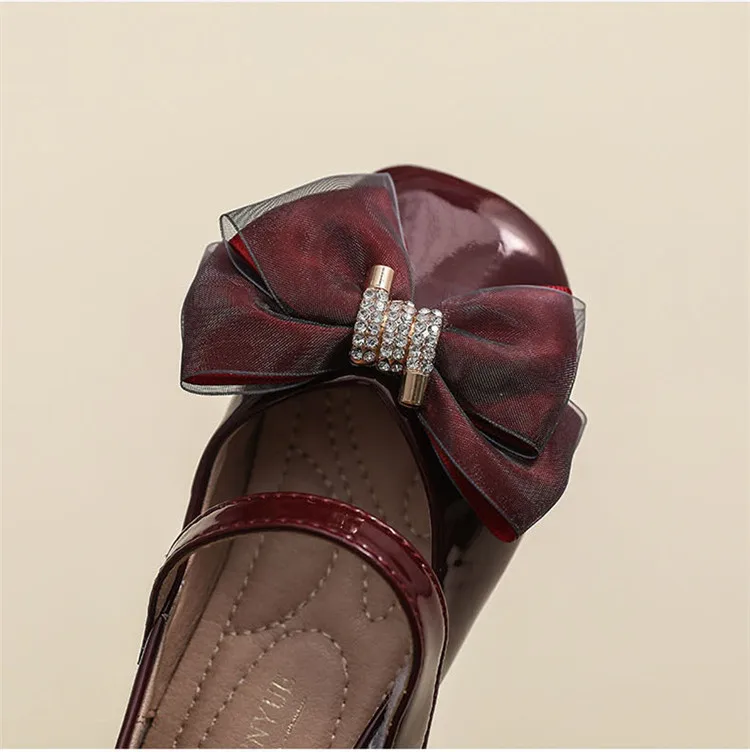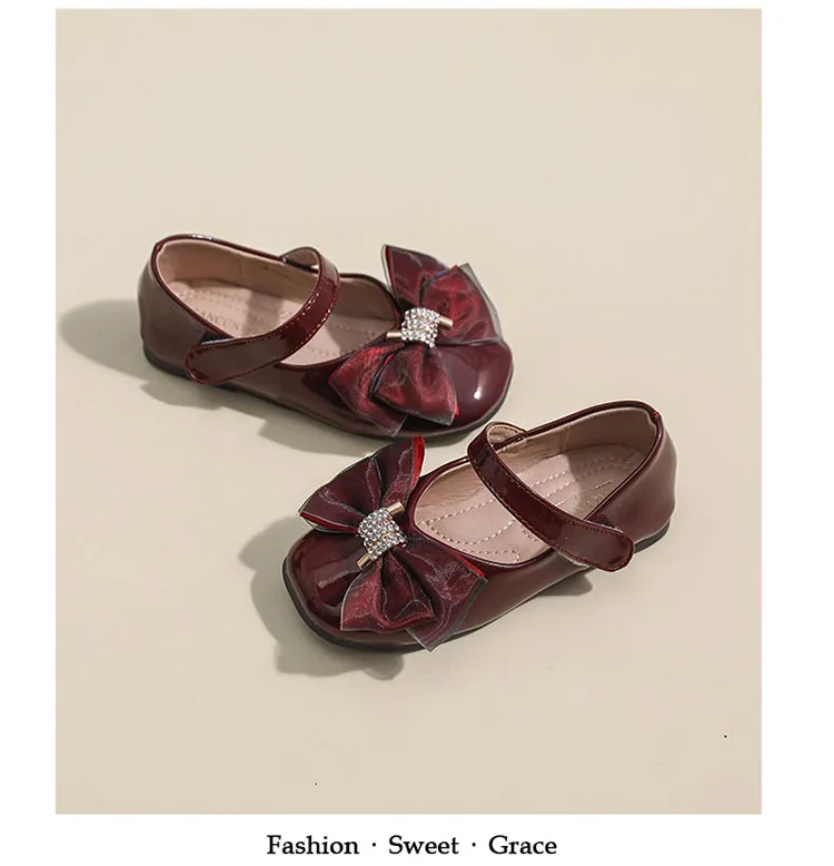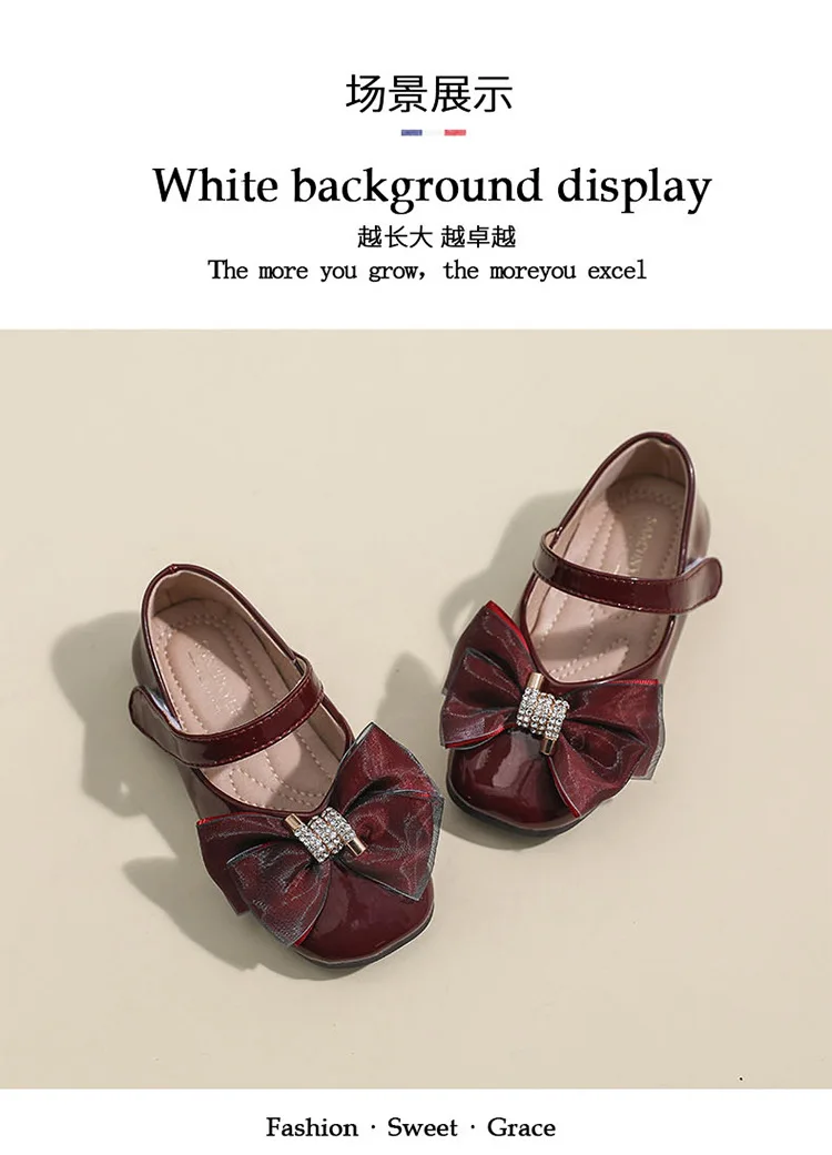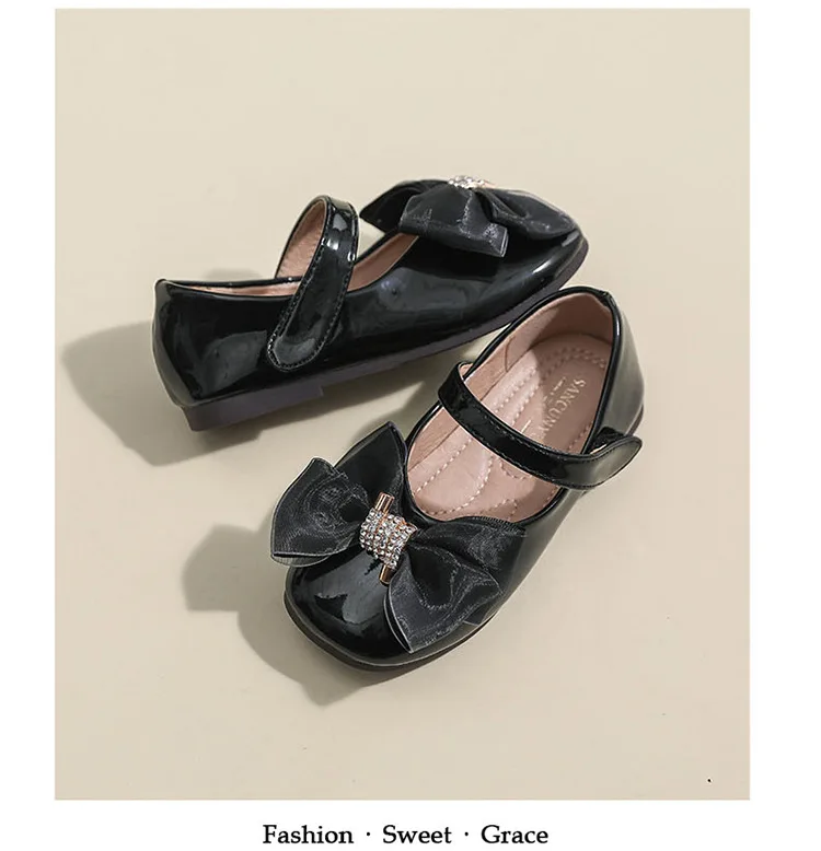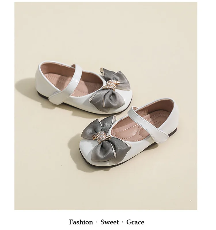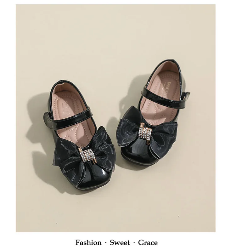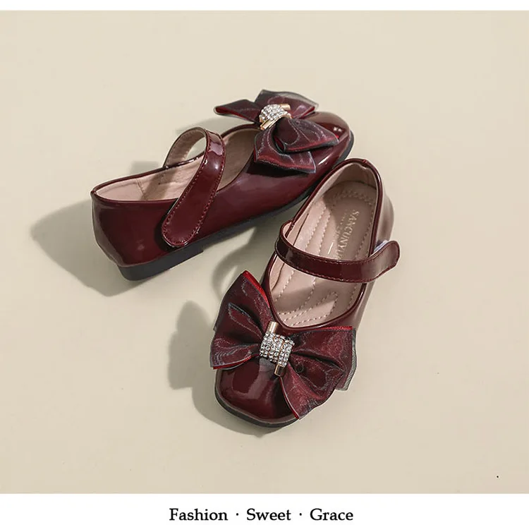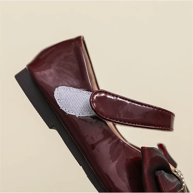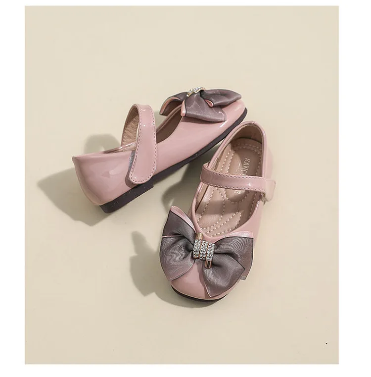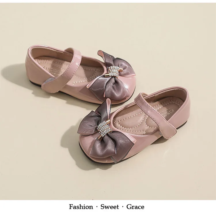ULKNN بنات شقة القوس أحذية 4 To12 سنة الاطفال الوردي الجلود حذاء واحد ضوء Chidlren الزفاف الزهور الفتيات حذاء غير رسمي 2023