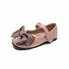 ULKNN بنات شقة القوس أحذية 4 To12 سنة الاطفال الوردي الجلود حذاء واحد ضوء Chidlren الزفاف الزهور الفتيات حذاء غير رسمي 2023