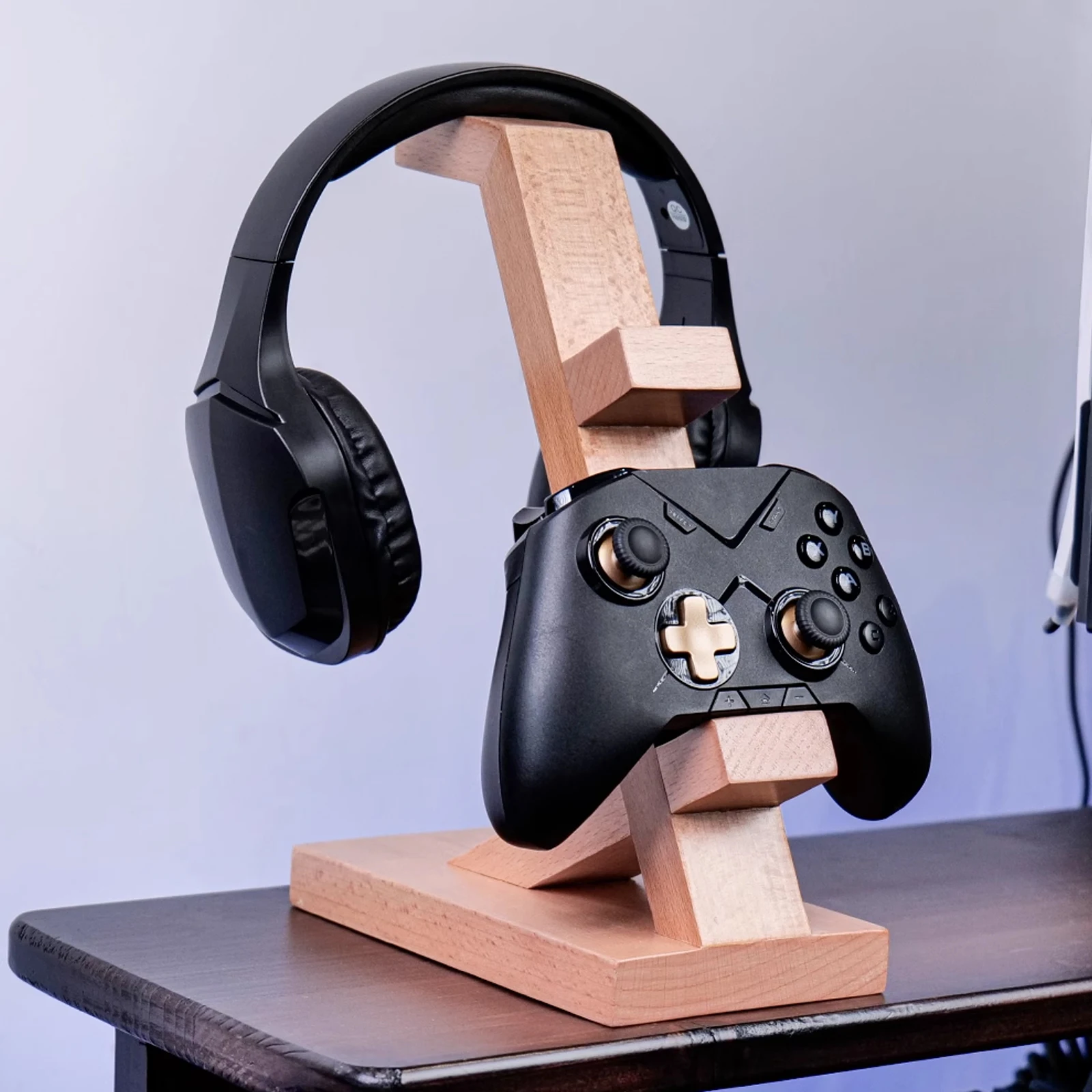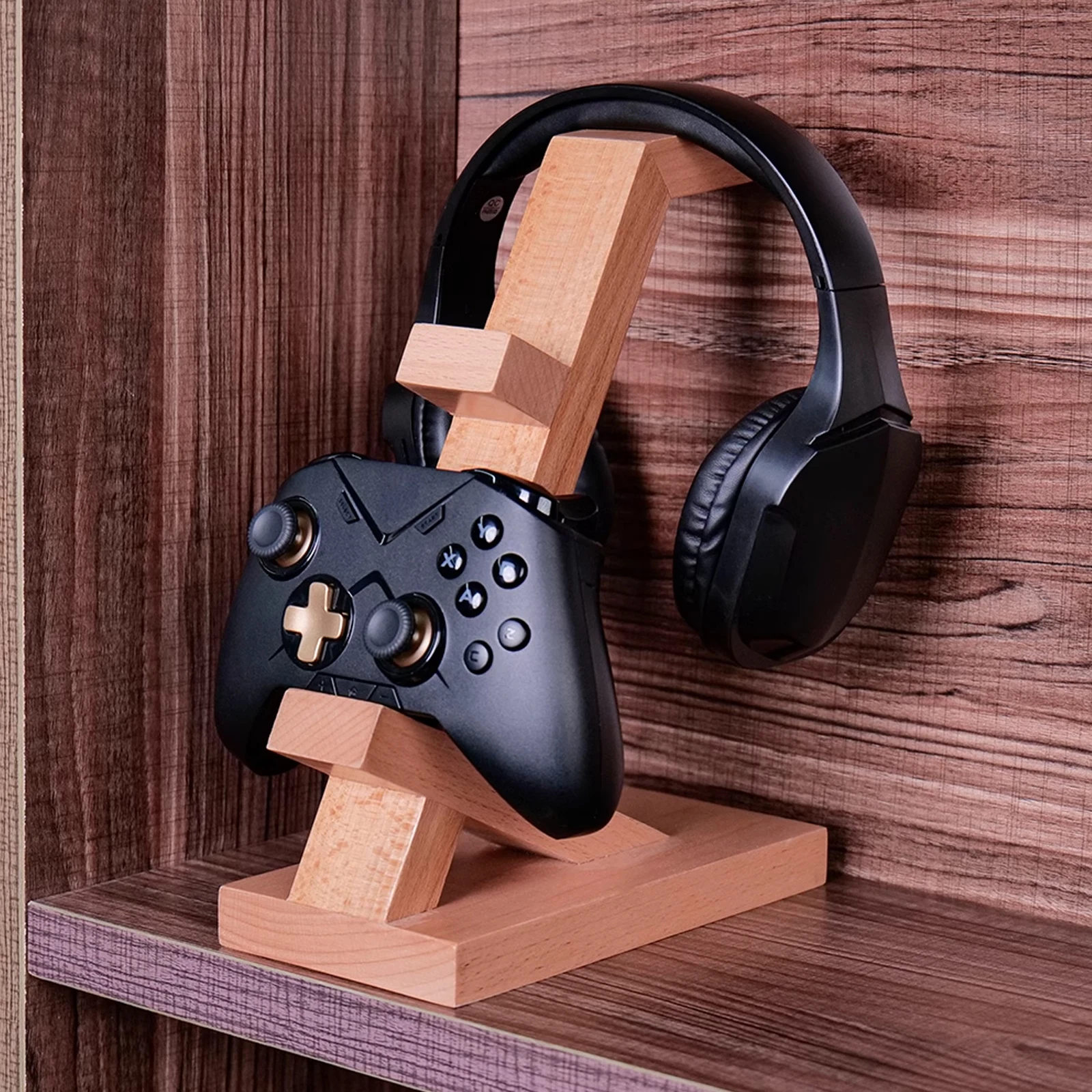 Universal Solid Wood Headphones Stand 3 Layer Desktop Stand for PS5/Xbox Game Controller Gaming Headset Display Shelf Accessory