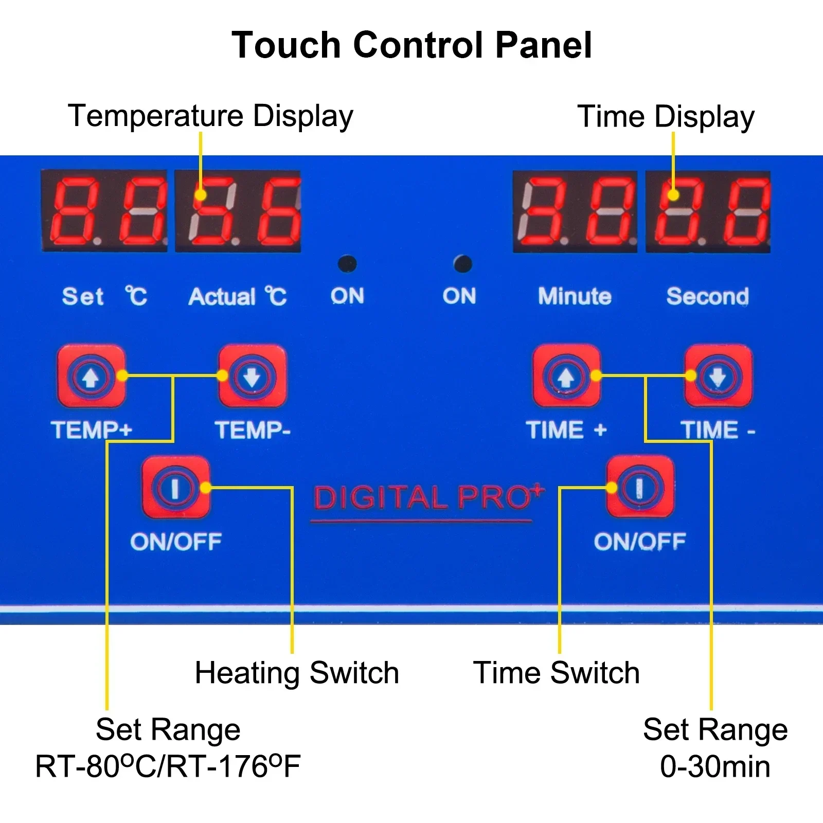 【DIGITAL CONTROL PANEL】 – The jewelry cleaner ultrasonic machine features a digital control panel, with an adjustable timer (0-30 min) and heater (RT-176℉/RT-80℃) displayed on LED. A heating function can effectively soften and dissolve oil and wax stains, thereby improving the cleaning effect.