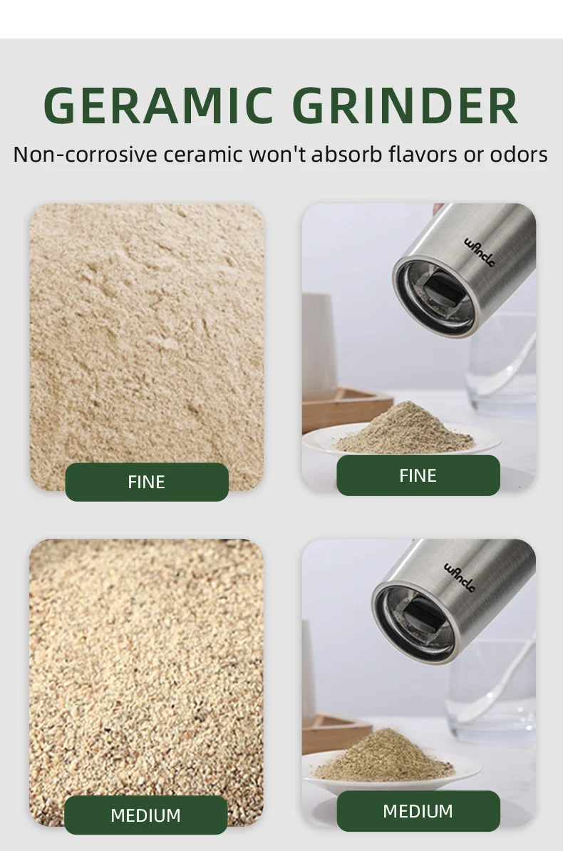 • Premium high hardness ceramic mechanism can easily grinds peppercorns, salt, and other your favorite spices. Non-corrosive ceramic grinder won’t absorb flavors or odors.