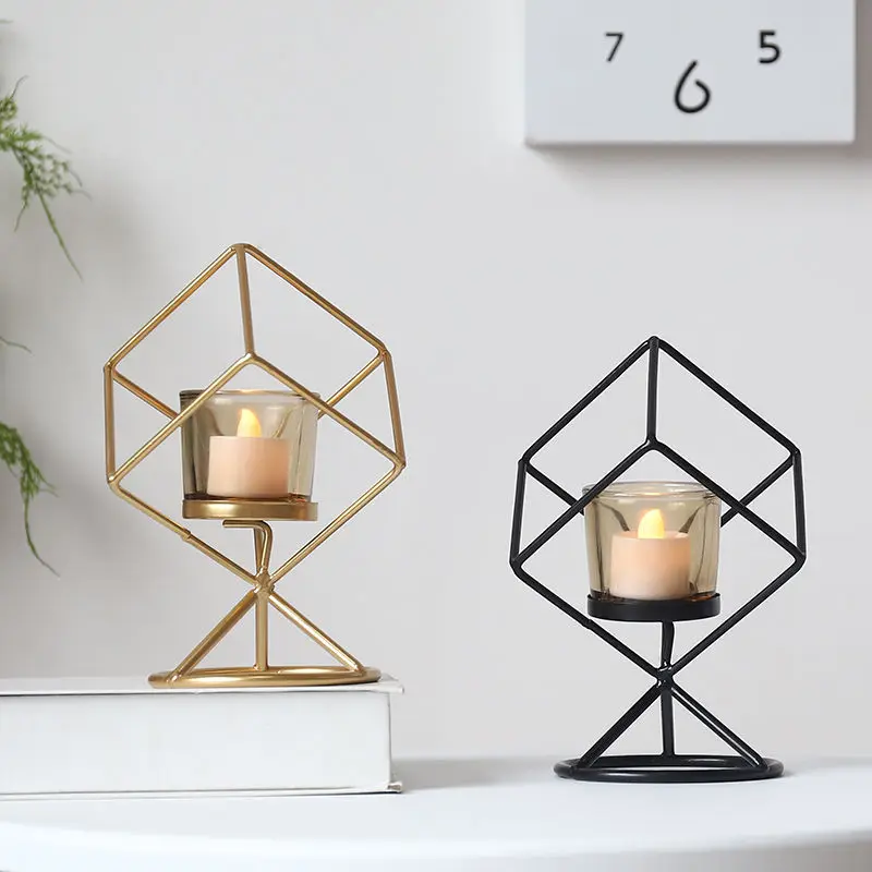 حاملات شموع الزفاف الحديثة جلام معدنية فريدة من نوعها حاملات شموع صغيرة هندسية فاخرة Supporto Di Candela قطع مركزية للطاولة