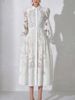 white lace embroidery dresses for women stand collar long sleeve high waist a line single breasted elegant dress female new