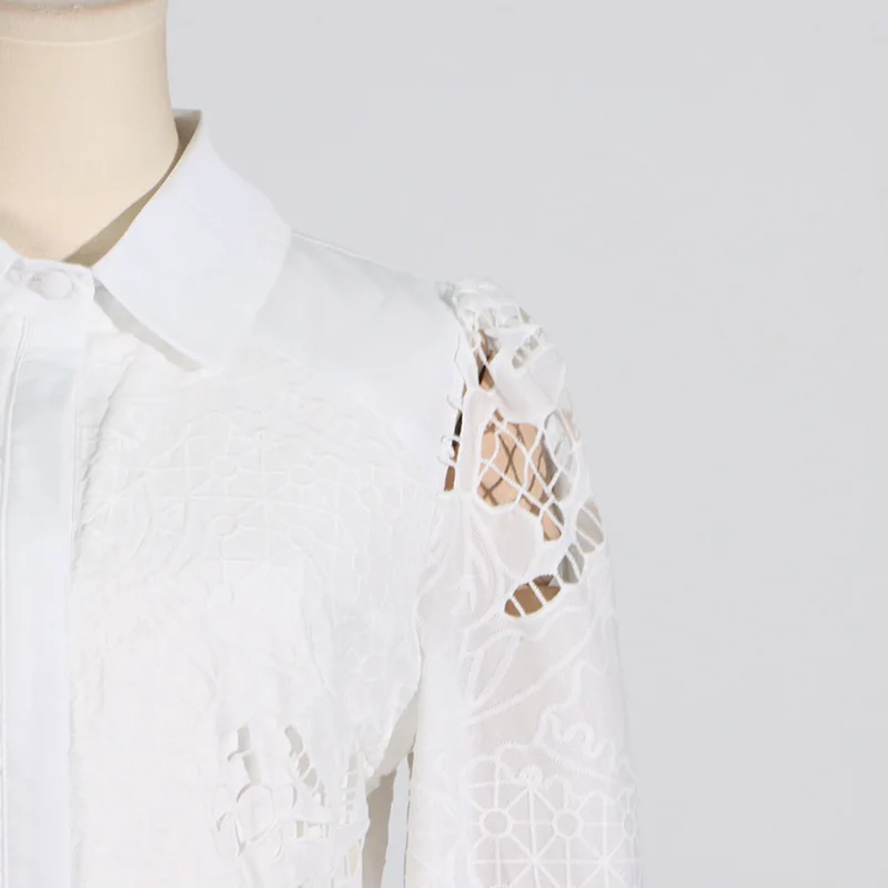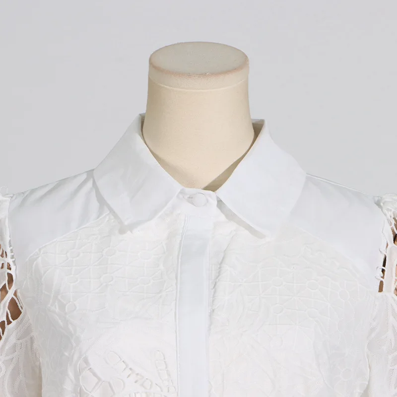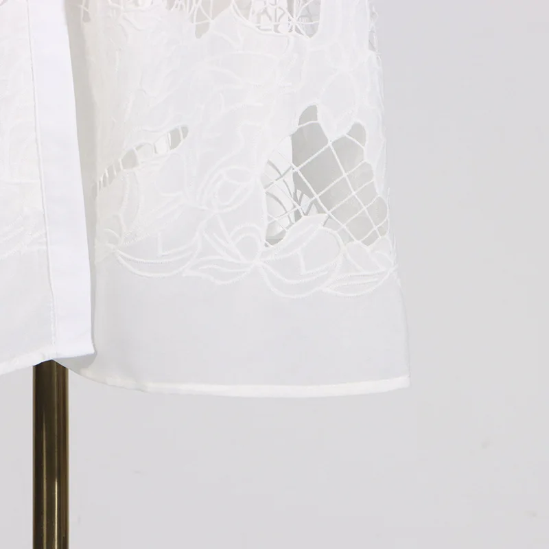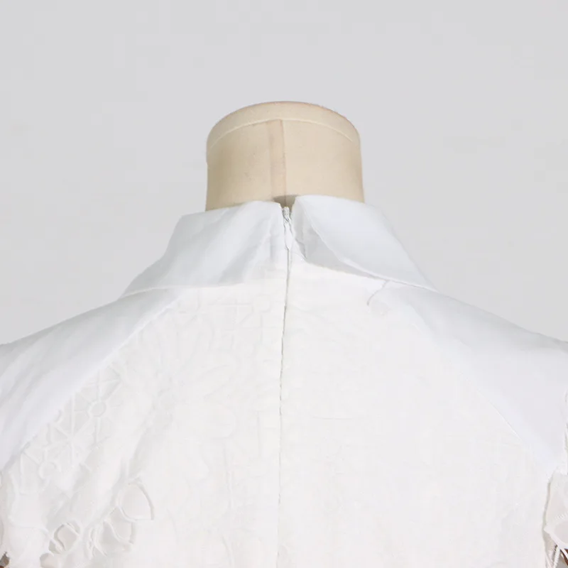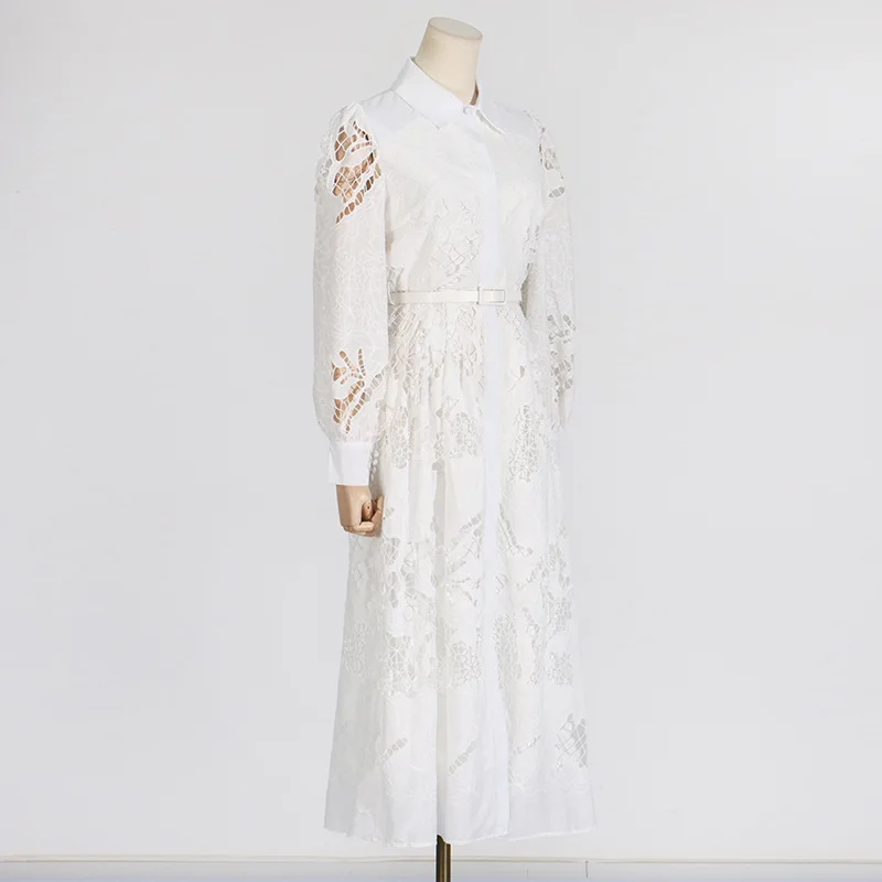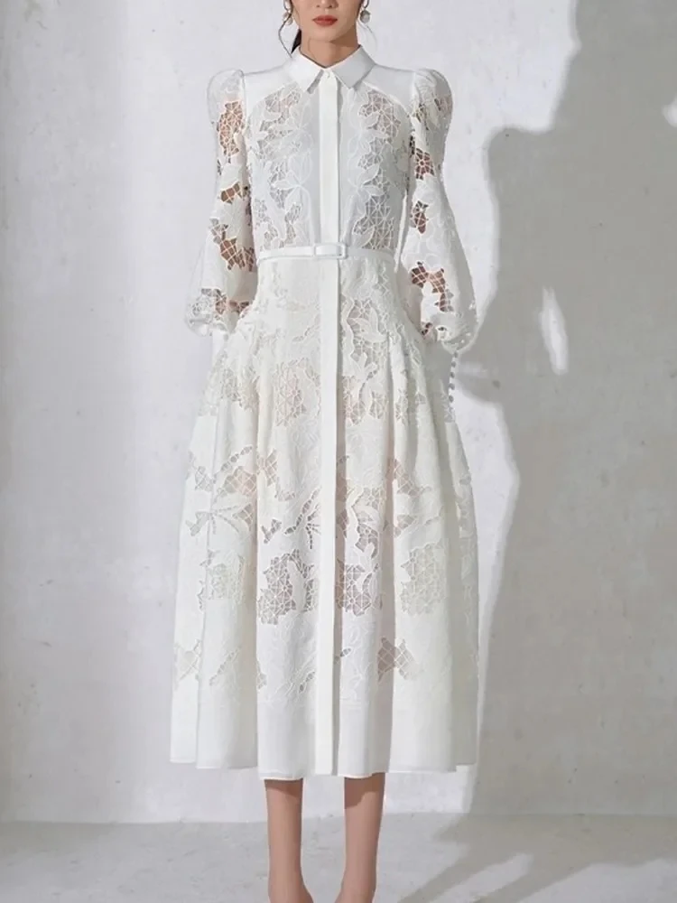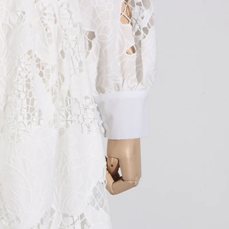 white lace embroidery dresses for women stand collar long sleeve high waist a line single breasted elegant dress female new