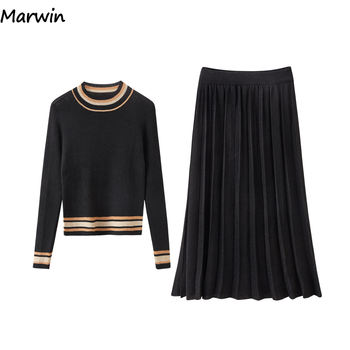 Marwin الجديدة القادمة الخريف الربيع الدافئة لينة عالية الشارع نمط المرأة مجموعات عادية منتصف العجل التنانير مرونة الخصر سلم البلوزات مجموعات