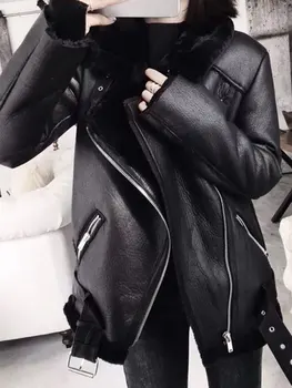 Ailegogo Winter Coats Women Thickness Faux Leather Fur Sheepskin Female Fur Leather Jacket Aviator Outwear Casaco Feminino