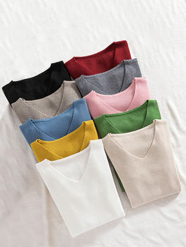 Zoki-سترة محبوكة بأكمام طويلة ، مثيرة ، ياقة على شكل V ، سترة عصرية ، بلوزة أساسية ضيقة ، على الطراز الكوري ، مجموعة الخريف والشتاء