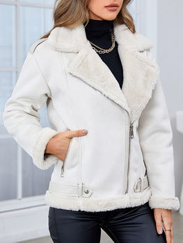 Ailegogo Autumn Winter Women Loose Warm Moto Biker Faux Lamb Fur Coat Vintage Female Belt Zipper Jacket Retro Outwear