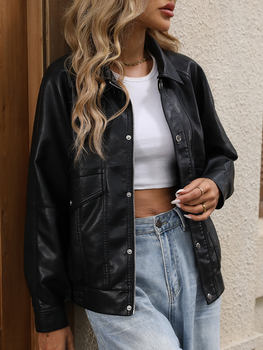 Ailegogo Spring Autumn Women Loose Retro Faux Leather Jacket Streetwear Female Zipper Moto Biker Coat Outwear