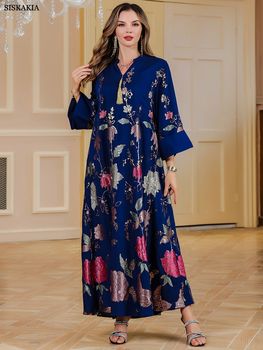 Siskakia Ramadan-Muslim Floral Print Long Dresses For Women’s Dubai Moroccan Loose Abayas Gold Stylish Stamping Kebaya