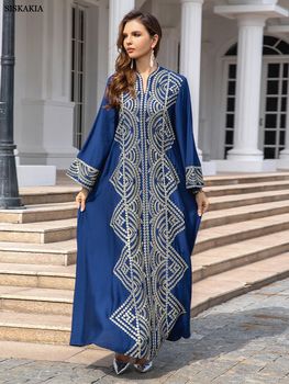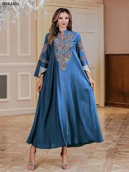Siskakia Muslim Embroidery Long Dress With Diamonds Dubai Luxury Abayas For Women Turkey Islam Moroccan Kaftan Evening Dress