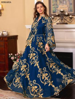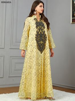 Siskakia Dresses With Long Sleeves Embroideried Sequin Muslim Abaya For Women Dubai Turkey Arab Elegant Loose Party Evening Dres