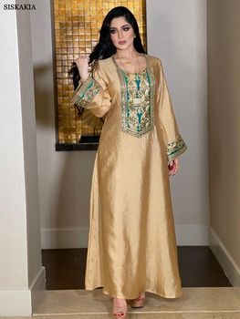 Siskakia Embroideried Sequin Luxurious Dresses With Long Sleeves Muslim Dubai Fashion Elegant Loose Abayas Women’s Evening Dress